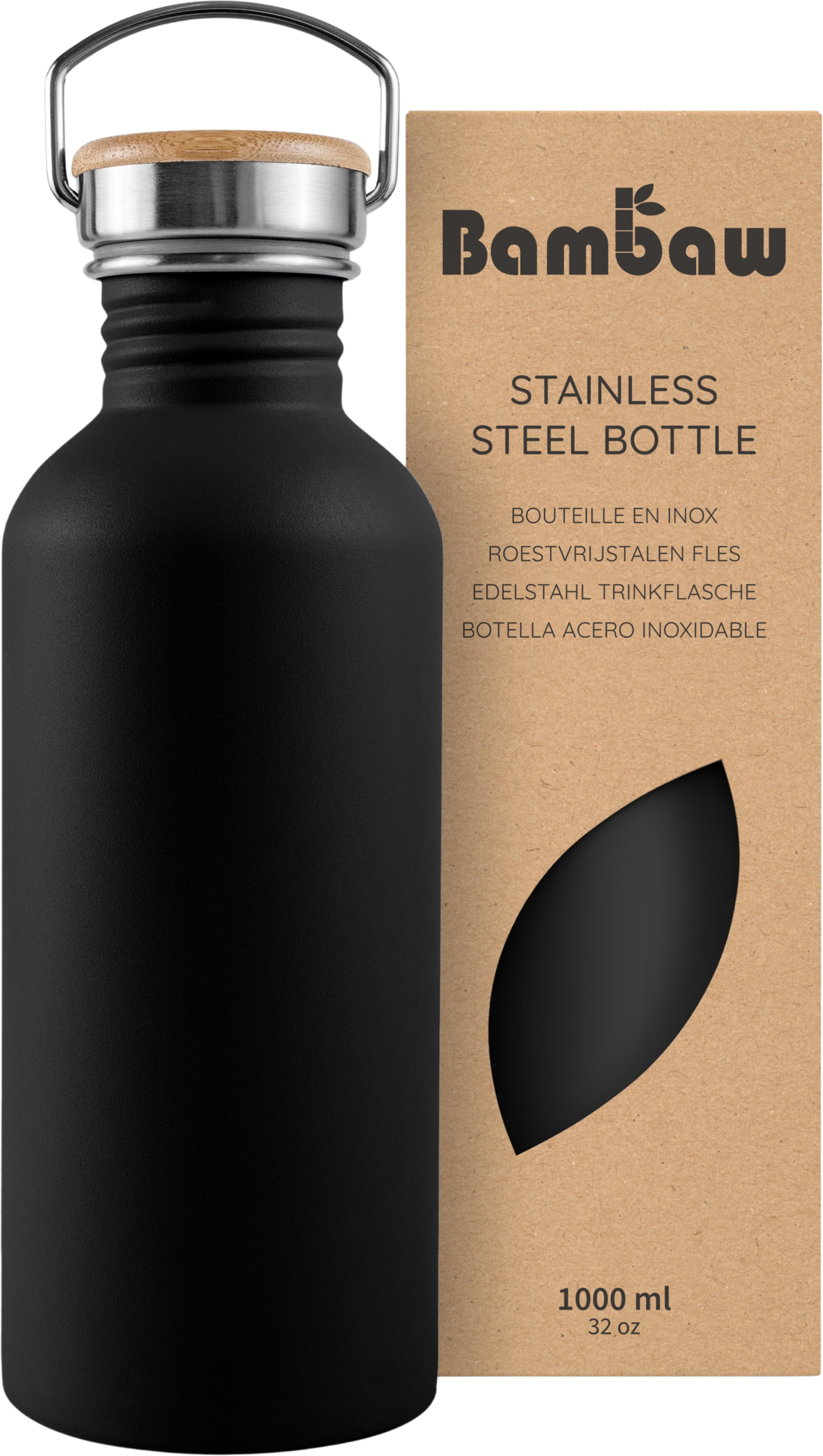 Bambaw Roestvrijstalen Fles, 1000 ml, Jet Black