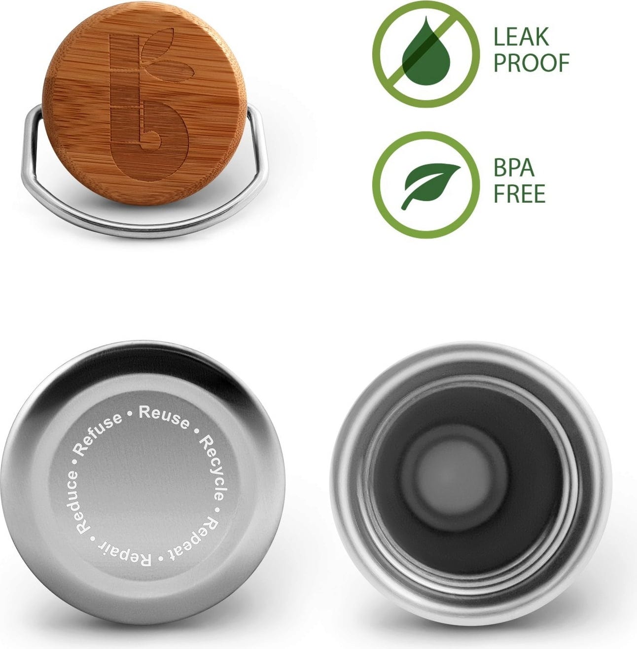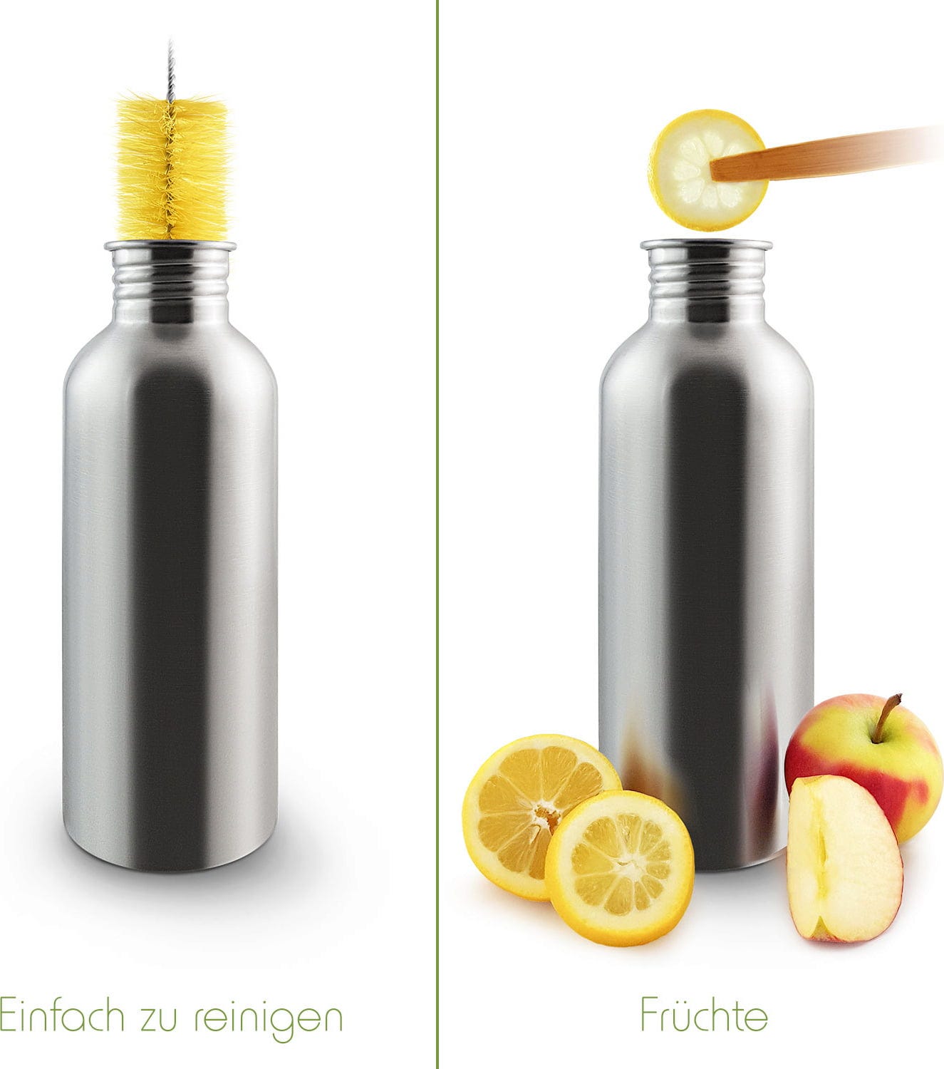 Deze fles is perfect voor je dagelijks leven! Bij het sporten, op kantoor, op school of tijdens het wandelen. Hij is gemaakt van roestvrij staal, heeft een lekvrije schroefdop van bamboe en heeft een tijdloos en eenvoudig ontwerp. De fles is vrij van schadelijke chemicaliën en kan na gebruik eenvoudig worden gereinigd met een flessenborstel.