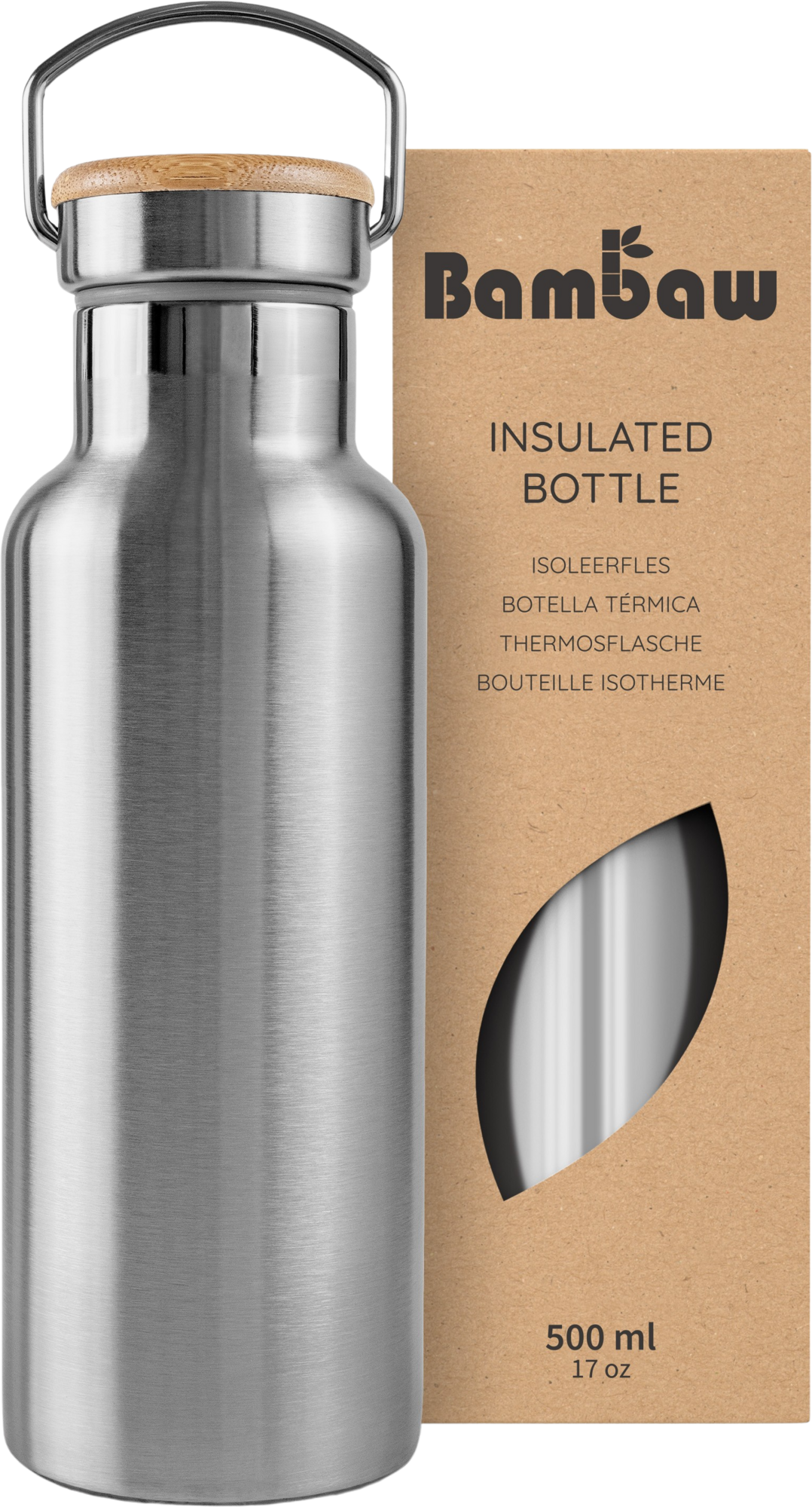 Bambaw Roestvrijstalen Thermosfles, 500 ml, Natural Steel