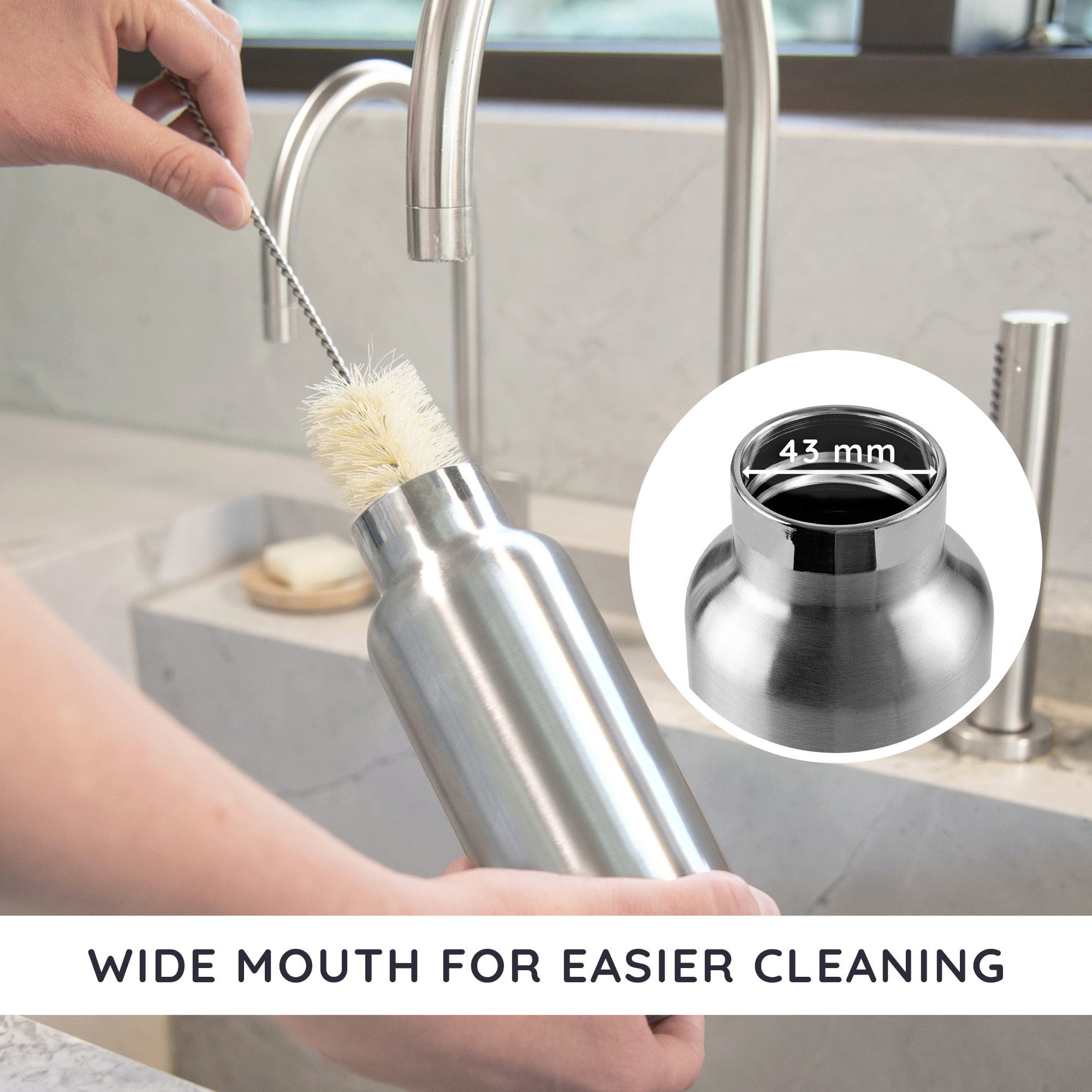Dankzij de grote opening kan je in deze thermosfles ook ijsklontjes, thee-eitjes of fruit doen. De fles houdt ook warme dranken warm en koude dranken koel. Dit maakt de fles voor zowel zomer als winter. Bovendien is hij na gebruik heel gemakkelijk schoon te maken met een flessenborstel.