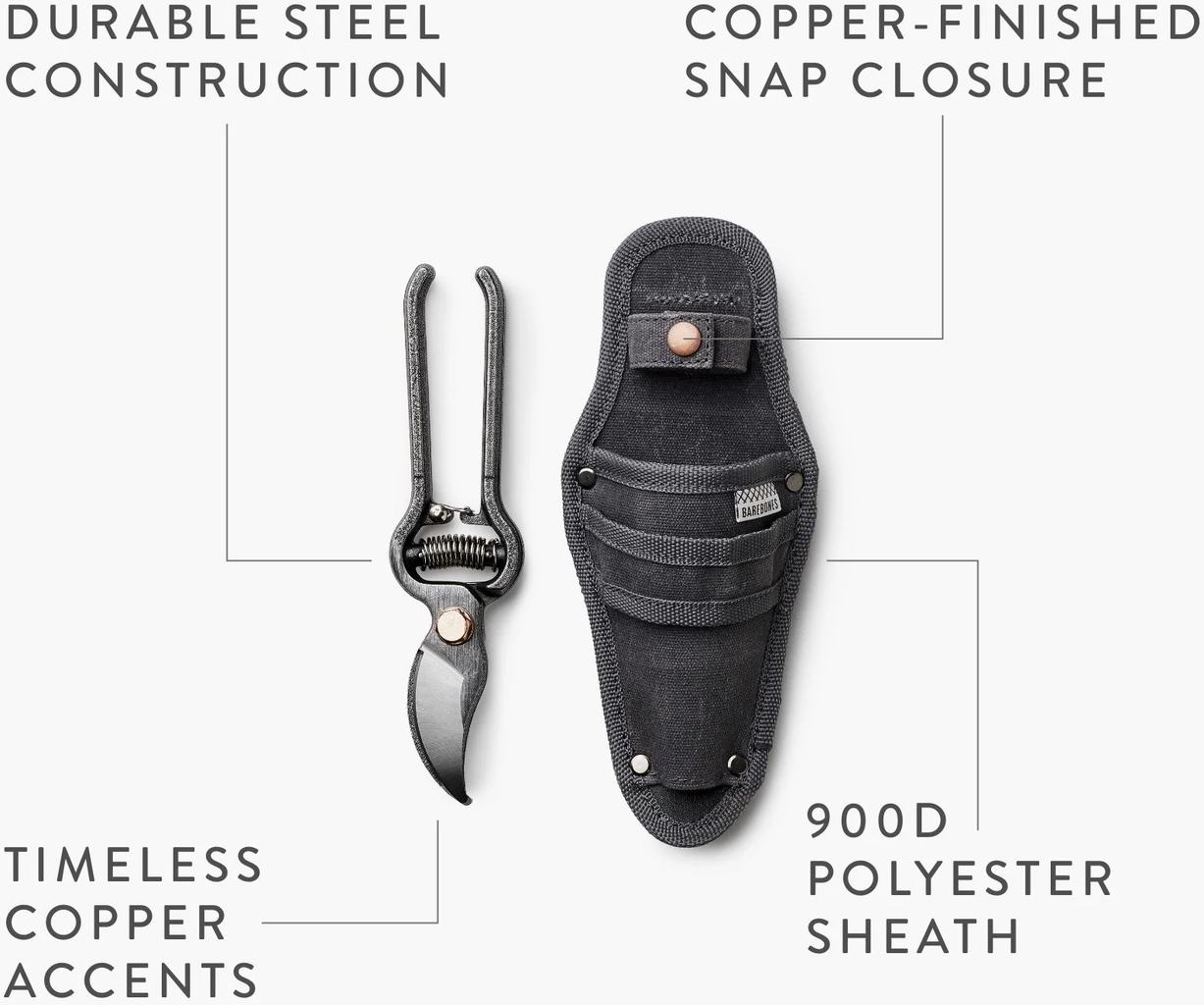 De behuizing combineert functionaliteit en design. Gemaakt van duurzaam polyester met een binnenvoering, bestand tegen dagelijks gebruik en beschermt het gereedschap. De roestvrijstalen riemclip zorgt voor gemakkelijk dragen, terwijl de sluiting het gereedschap optimaal vastzet. Het open uiteinde voorkomt dat er zich aarde ophoopt, waardoor de snoeischaar vele jaren meegaat.