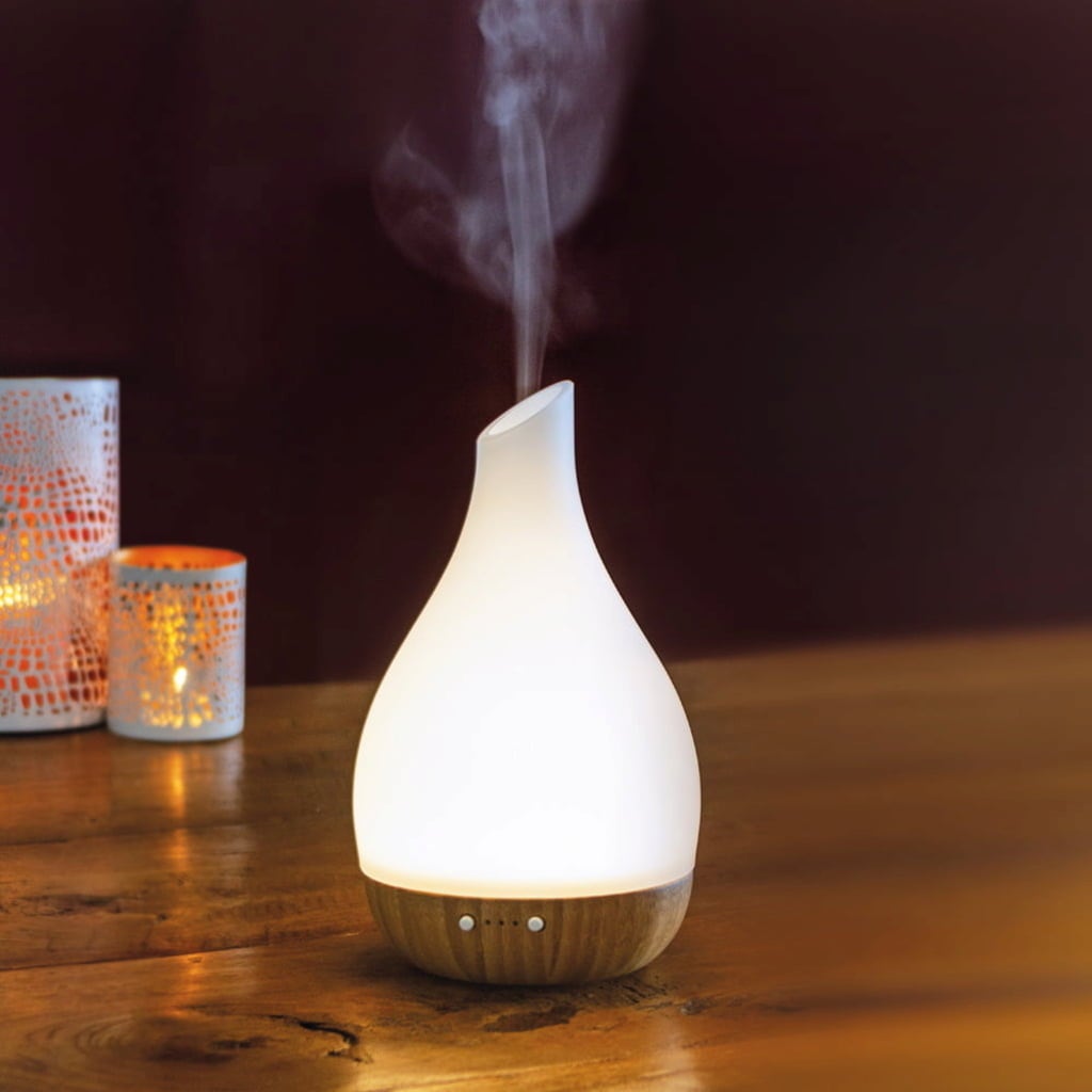 Voeg een paar druppels van je favoriete aromatische olie toe aan het water in de diffuser en trakteer je lichaam en geest op een ontspannende pauze.