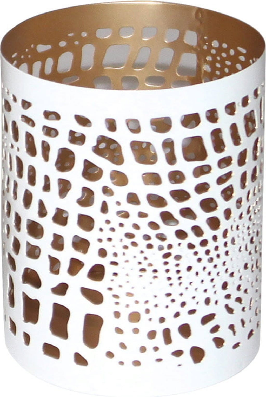 Deze decoratieve blikvanger is stijlvol en elegant. Het geperforeerde patroon geeft het kaarslicht een uniek lichtspel.