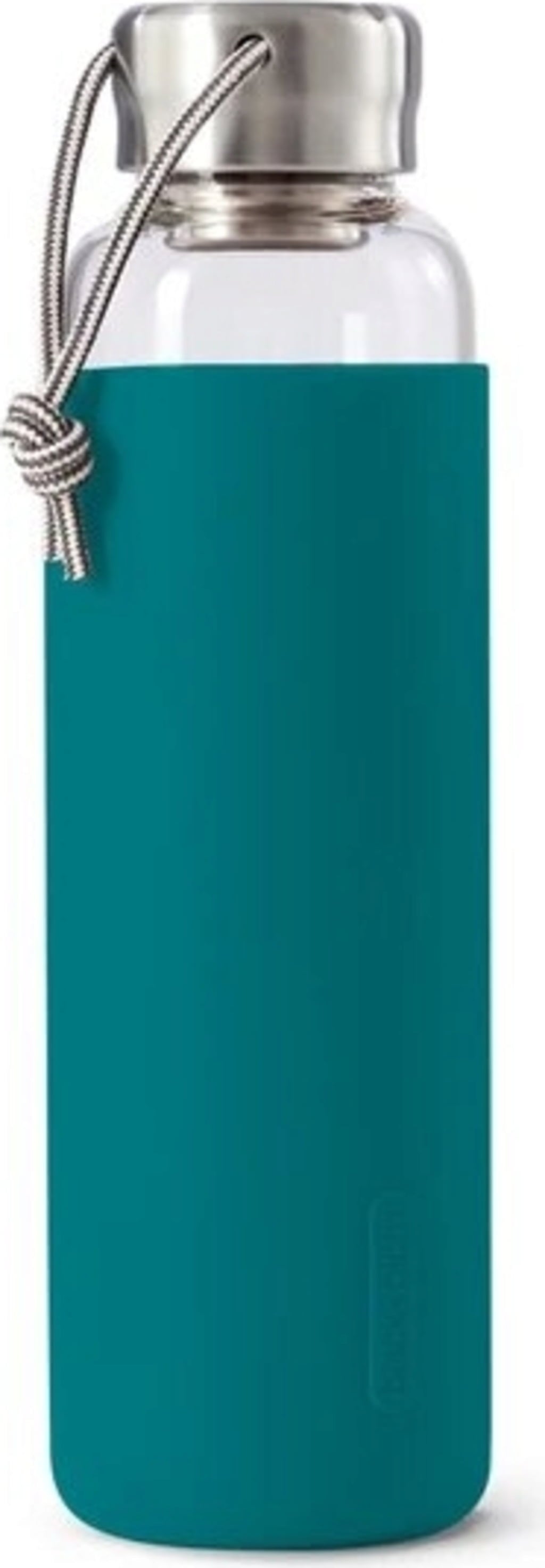 Stijlvolle drinkfles van 600 ml gemaakt van temperatuurbestendig borosilicaatglas. Omringd door een antislip siliconen beschermhoes - zodat je altijd alles onder controle hebt. Praktische draaglus van duurzaam nylon paracord. De schroefdraad van de fles zit aan de binnenkant, zodat de buitenkant glad blijft en een aangename drinkervaring gegarandeerd is.