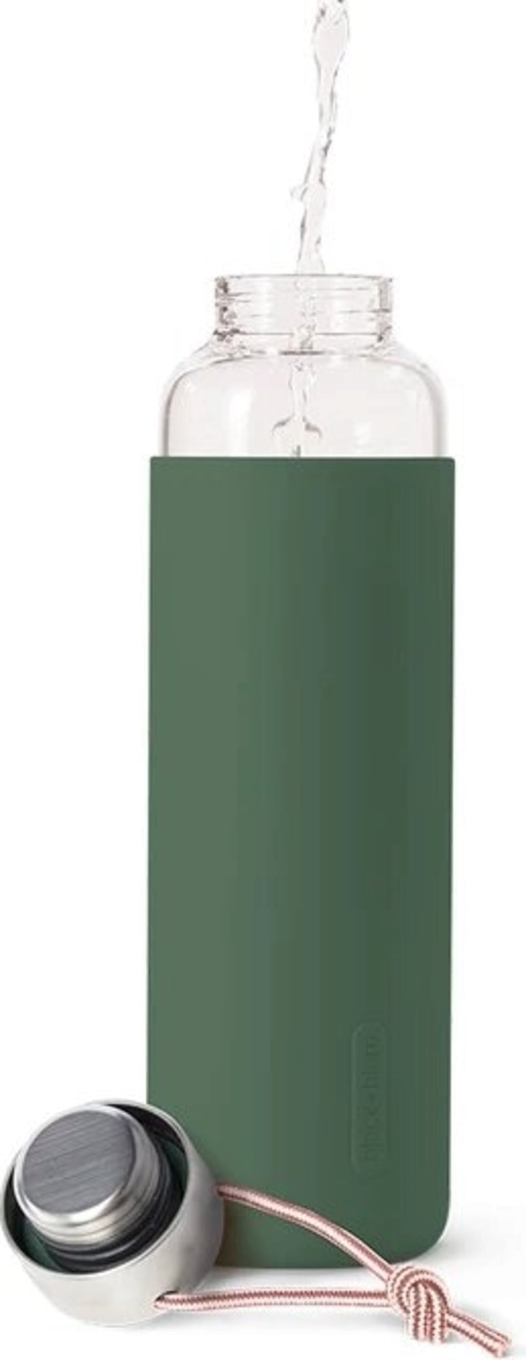 Stijlvolle drinkfles van 600 ml gemaakt van temperatuurbestendig borosilicaatglas. Omringd door een antislip siliconen beschermhoes - zodat je altijd alles onder controle hebt. Praktische draaglus van duurzaam nylon paracord. De schroefdraad van de fles zit aan de binnenkant, zodat de buitenkant glad blijft en een aangename drinkervaring gegarandeerd is.