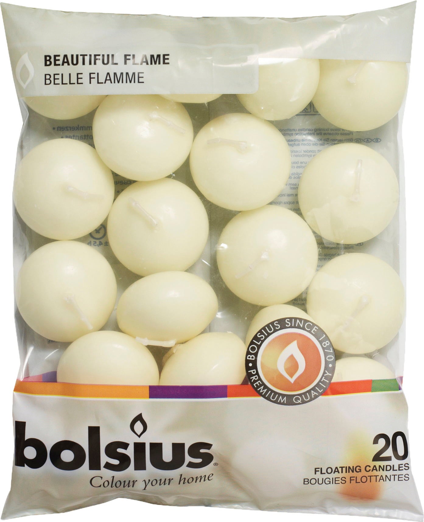 Deze eenvoudige, ivoorkleurige drijfkaarsen van Bolsius zijn een echte blikvanger op elk zomerfeest. Combineer ze met mooie vazen en accessoires en laat je tafels schitteren in kaarslicht.
