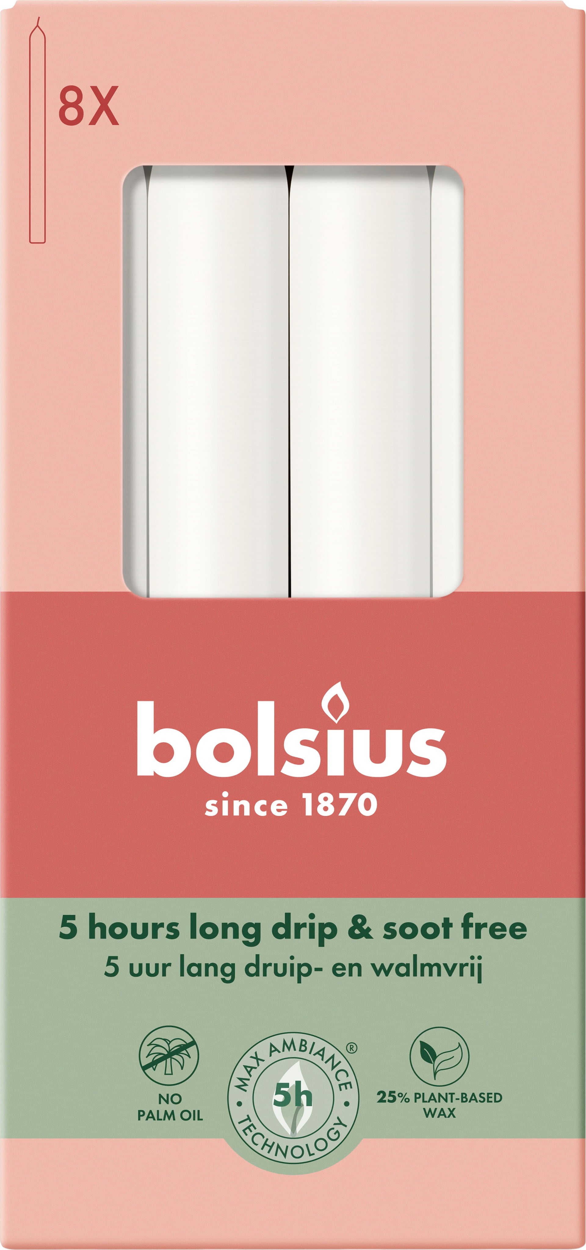 bolsius Essentials Dinerkaarsen - 8 stuks, Troebel wit