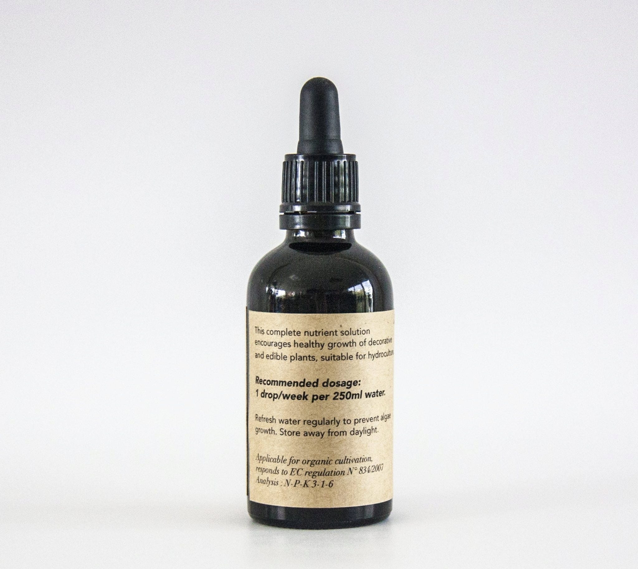 • Kiemplaatje / hydrocultuur: Voeg één druppel meststof per week toe aan 250 ml water. Ververs het water regelmatig om algengroei te voorkomen.