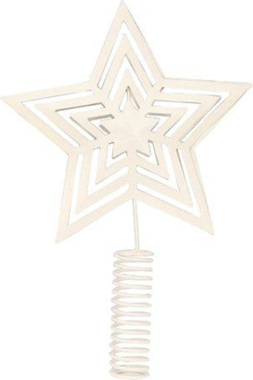 Je kunt je kerstboom letterlijk bekronen met deze feestelijke kanten ster. Het prachtige kunstwerk glinstert als witte sneeuw. Dankzij de spiraalvormige houder past de ster gemakkelijk op de meeste kerstbomen.