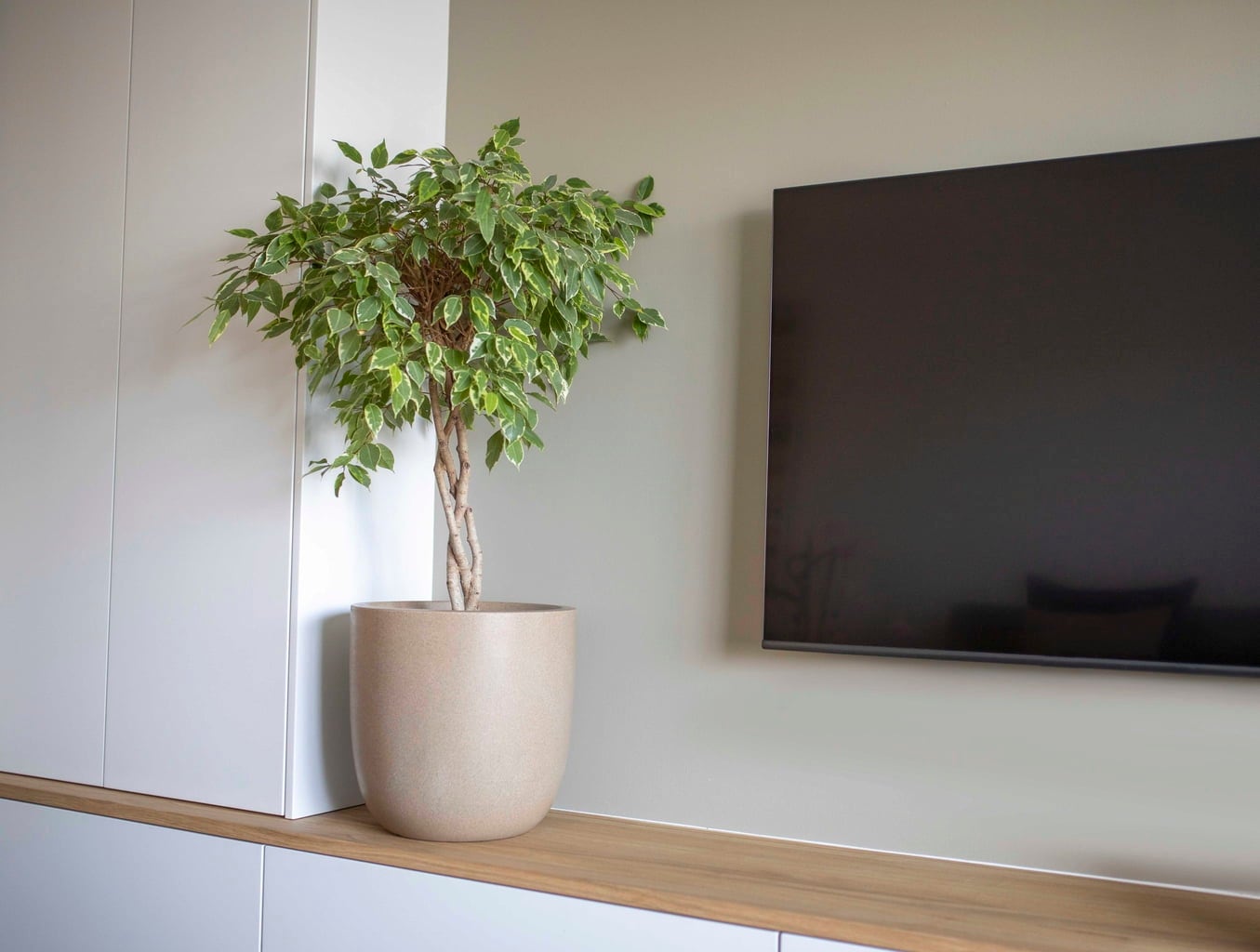 Het minimalistische, gladde ontwerp doet denken aan de textuur van natuursteen en geeft de pot een opvallende, stedelijke look. Zowel binnen als buiten past deze veelzijdige bloempot dankzij zijn eenvoudige elegantie naadloos in elk interieur en in elke tuin.