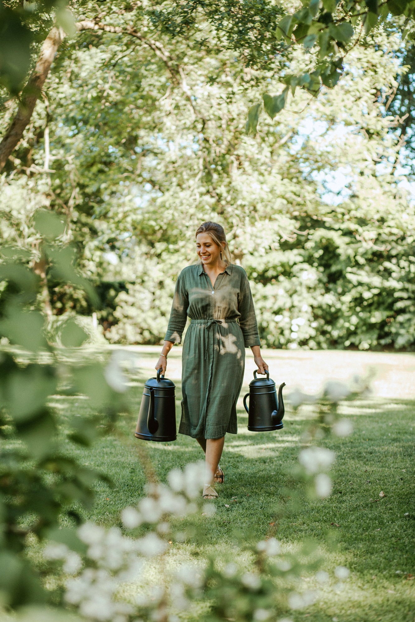 - Twee gebogen handgrepen voor optimale dosering van het besproeiingswater
