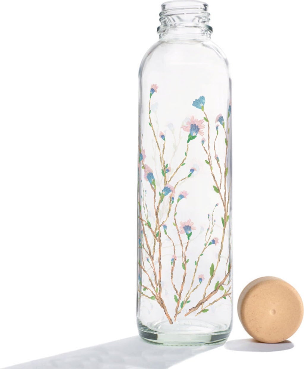 De aangenaam grote mond van de glazen fles is bijzonder praktisch voor vullen, drinken en schoonmaken.