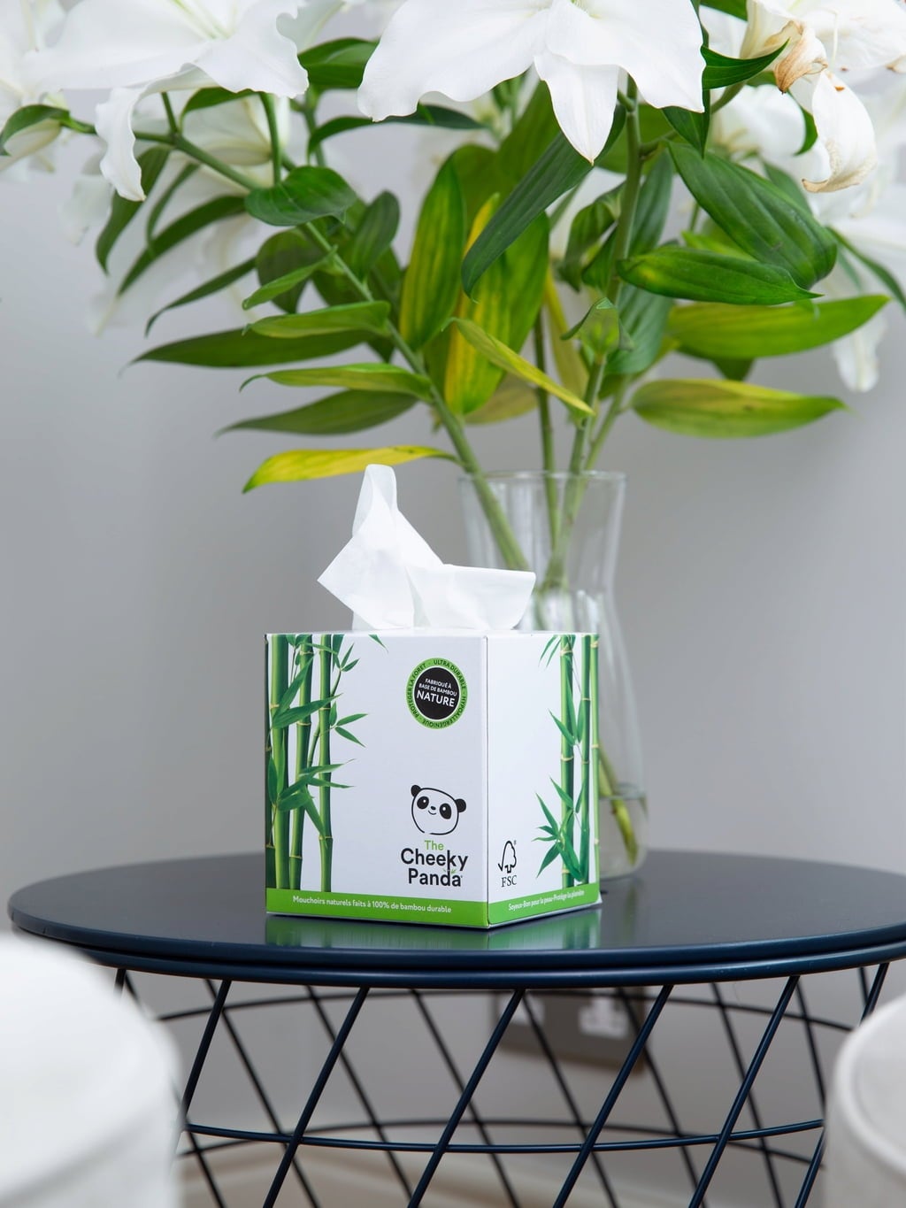 Vroegtijdig niezen? Lopende neus? Geen probleem met deze ultrazachte, geurloze tissues. De tissues zijn gemaakt van natuurlijk en FSC-gecertificeerd bamboe, en hypoallergeen en duurzaam. De tissues en verpakking zijn bovendien veganistisch en plasticvrij.