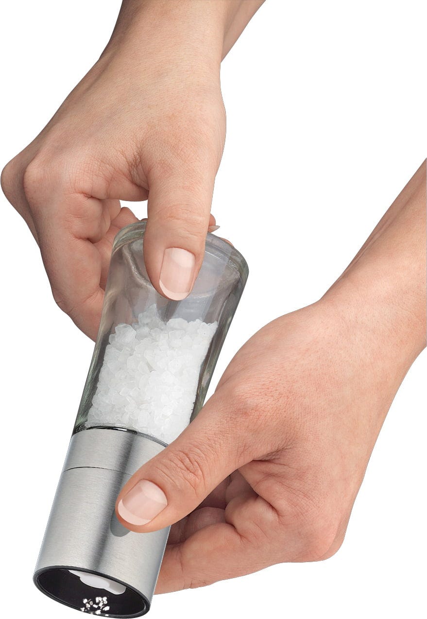 De BARI zoutmolen van cilio is speciaal ontworpen om grof zeezout of steenzout in de gewenste korrelgrootte te malen. Met zijn moderne mix van roestvrij staal en glas is het niet alleen een functioneel hulpmiddel, maar ook een stijlvol accessoire voor elke tafelsetting.