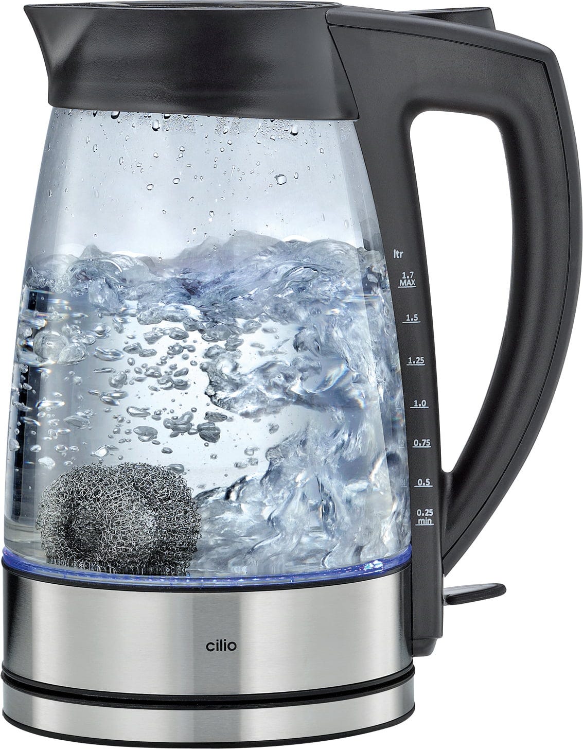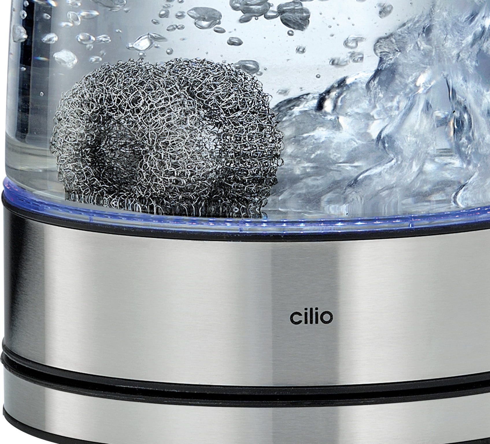 Kalkaanslag in de waterkoker ziet er niet alleen onaantrekkelijk uit, maar verhoogt ook het energieverbruik en tast de smaak van thee en koffie aan. De cilio KALKFEE kalkvanger beschermt je keukenapparatuur mechanisch: kalk bouwt zich bij voorkeur op ruwe oppervlakken op. Daarom is het fijnmazige roestvrijstalen gaas van de Kalkfee het perfecte "ankeroppervlak" en worden je keukenapparaten gespaard.