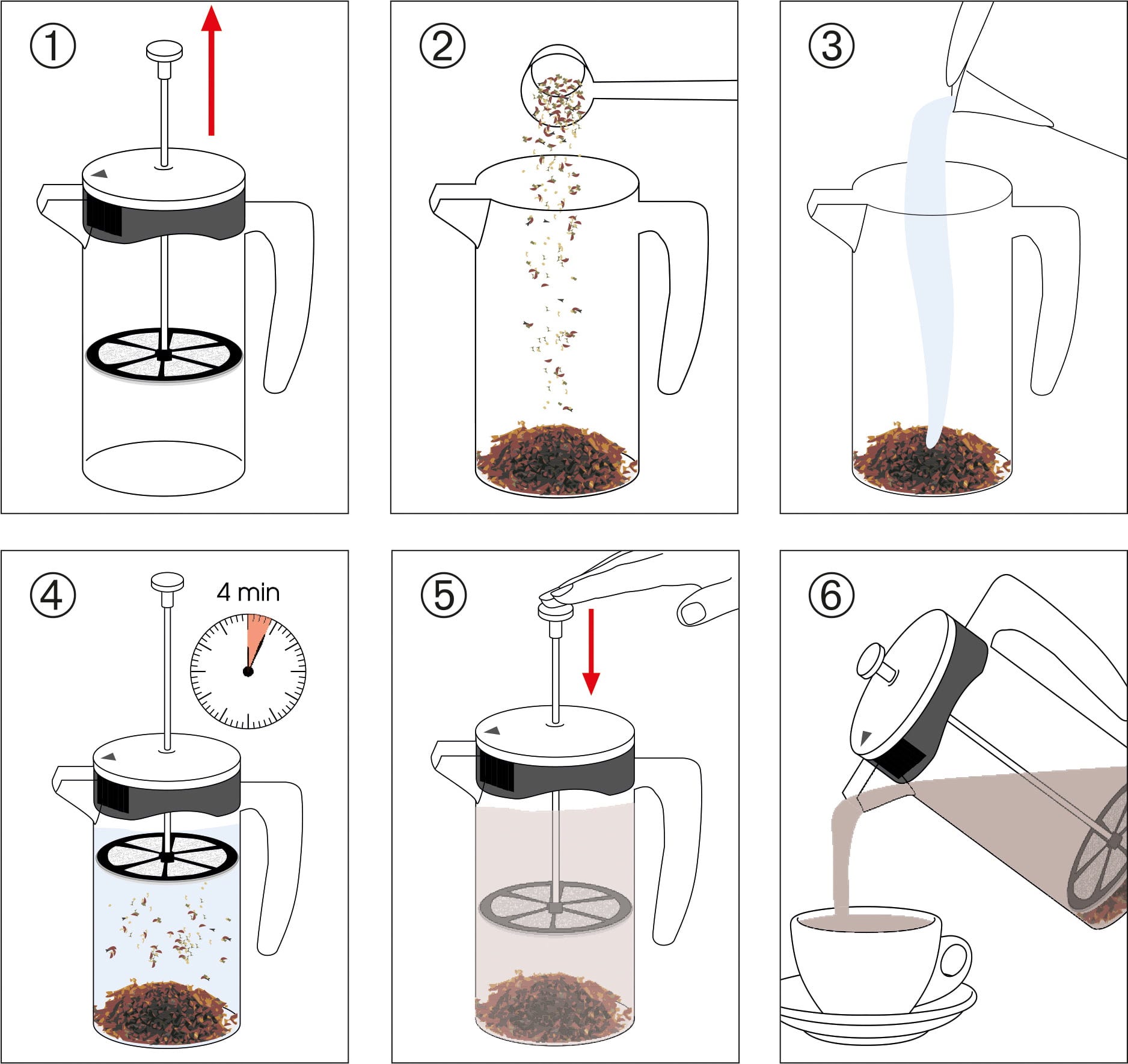 Begin je ochtend met het onvergelijkbare aroma van vers gezette koffie uit de cilio MARIELLA cafetière. Giet gewoon het koffiepoeder en heet water in de hittebestendige glazen container, doe het deksel erop en wacht minstens 4 minuten. Druk tot slot de metalen zeef naar beneden. In tegenstelling tot conventionele papieren filters blijven de vetten en oliën van de koffie behouden, wat zorgt voor een intens aromatische smaak.
