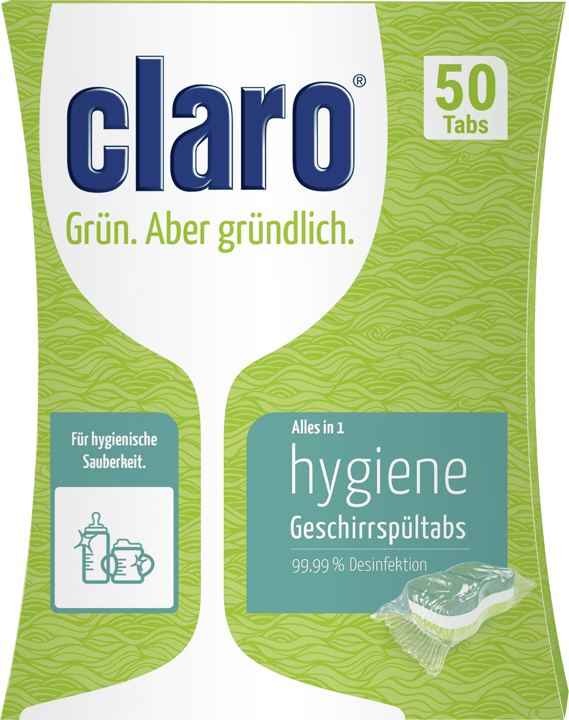 De Hygiëne Tabs van claro zijn bijzonder geschikt voor mensen met allergieën, omdat ze 99,99% van alle bacteriën, virussen en schimmels verwijderen. Zelfs babyschalen en flessen worden grondig ontdaan van resten en hygiënisch gereinigd. Natuurlijk kunnen de tabs ook worden gebruikt voor de gewone vaat. Omdat er al zout- eng lansspoelmiddelvervangers in zitten, hoef je geen extra producten te gebruiken. De tabs ontwikkelen hun volledige effectiviteit zelfs bij lage temperaturen en maken indruk met hun anti-kalkfunctie.