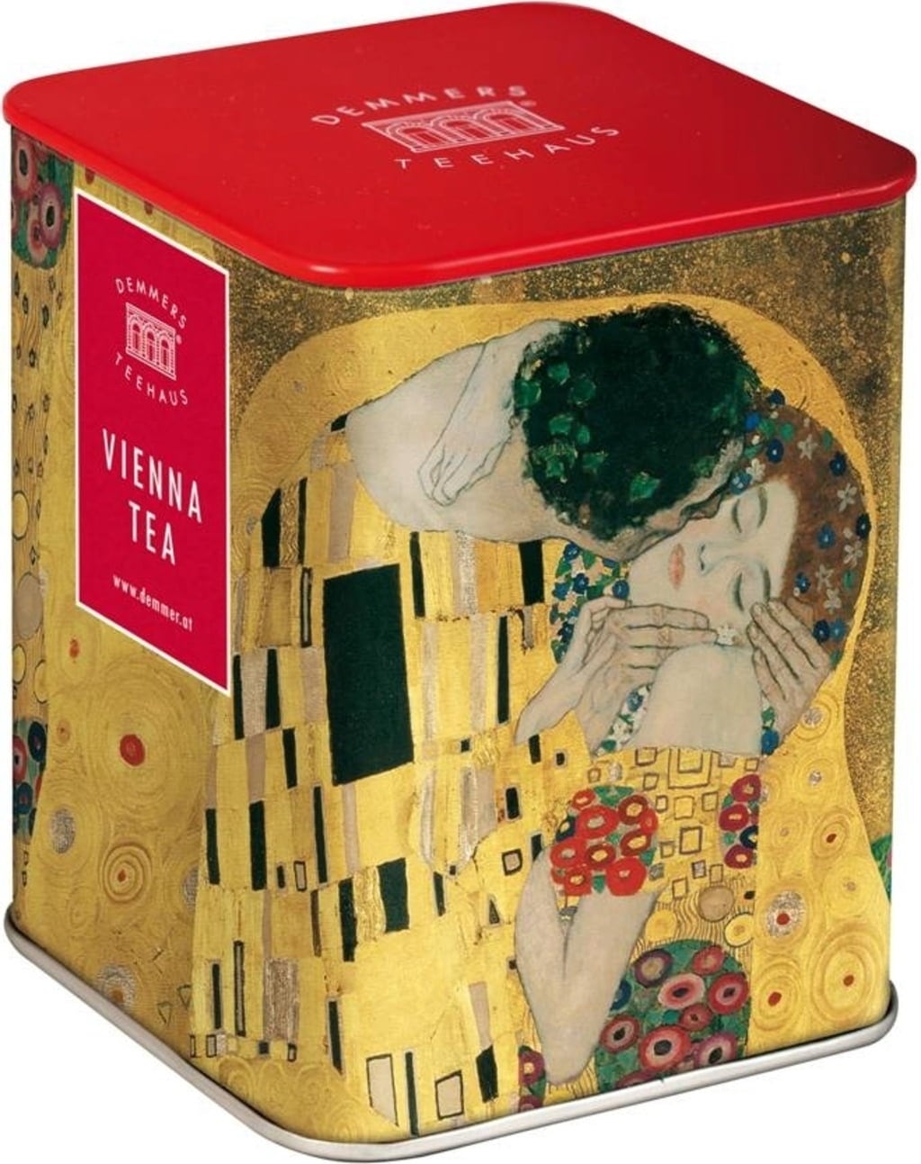 Een van de belangrijkste werken van Gustav Klimt siert dit prachtige metalen theeblikje - "Der Kuss". Het blikje toont de diplomatieke vaardigheden van geavanceerde theeblenders: het is gevuld met de populaire Ambassador Mix® van Demmers Teehaus, waar het liefkozend de "diplomatieke versie" van Earl Grey wordt genoemd. Een voortreffelijke melange van zwarte thee wordt voorzichtig verfijnd met de aroma's van bergamot en natuurlijke sinaasappelolie. De hazelnootbruine kopkleur heeft een zonnige geur, terwijl de pittige tonen van citrus en sinaasappelolie het gehemelte flatteren. Een heerlijke Earl Grey thee met een twist!