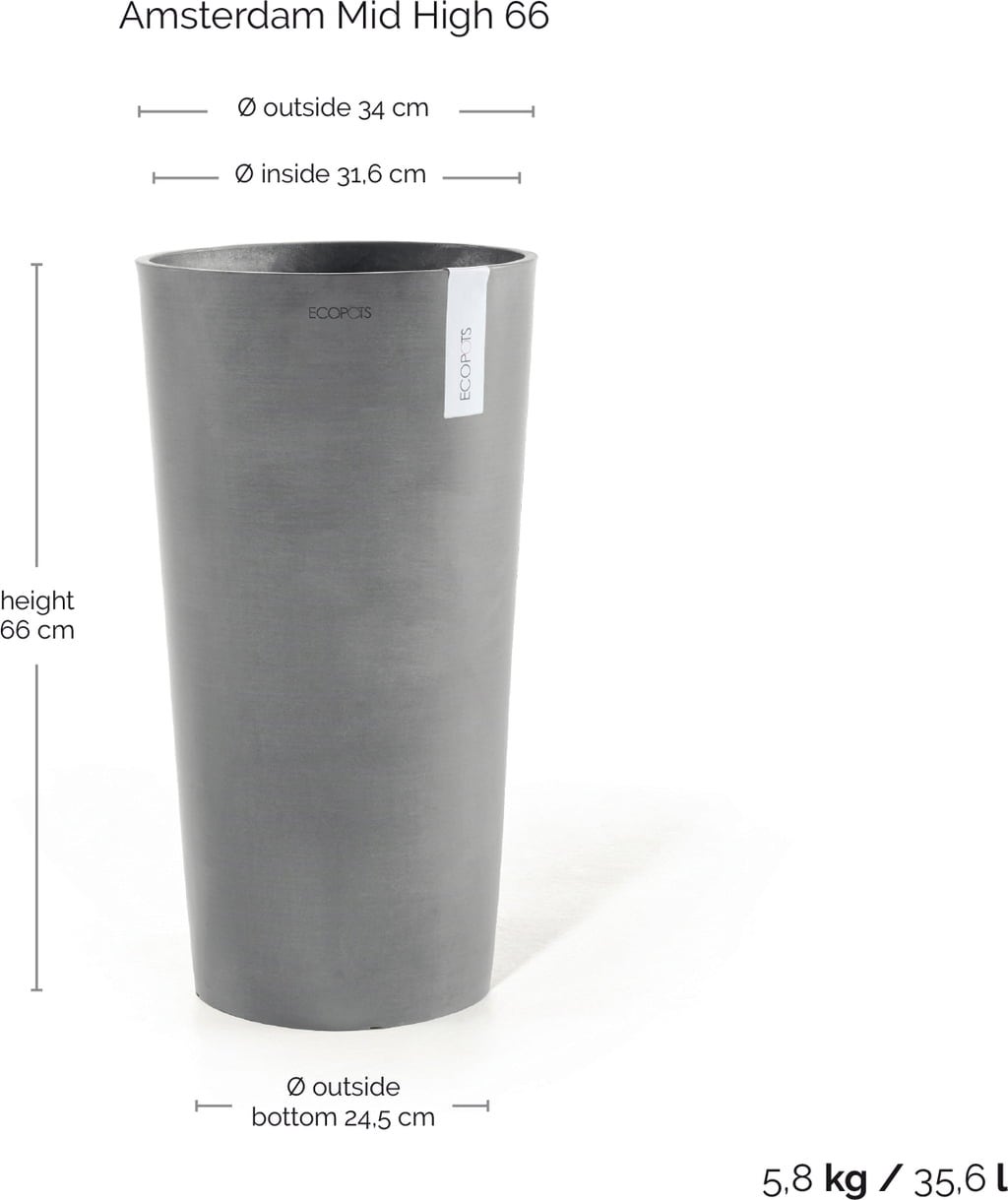 Ecopots Amsterdam Bloempot Mid High 66, Grey