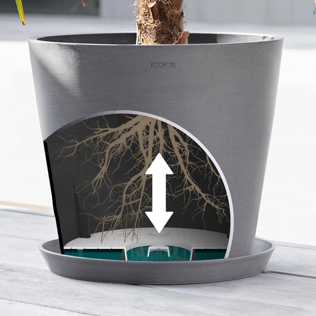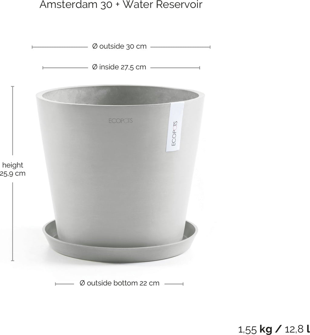 Ecopots Amsterdam Waterreservoir Wit Grijs, Ø 30 cm, hoogte 26.3 cm