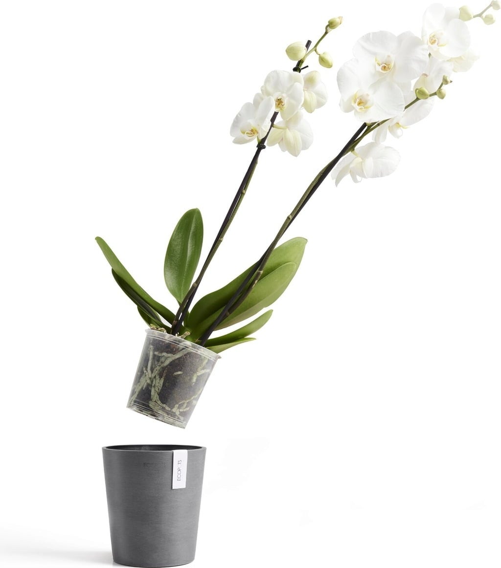 Dankzij het bijzondere ontwerp met een verhoogd gedeelte in de bodem is deze bloempot bijzonder geschikt voor orchideeën, omdat overtollig water weg kan lopen en de wortels van de plant droog blijven.