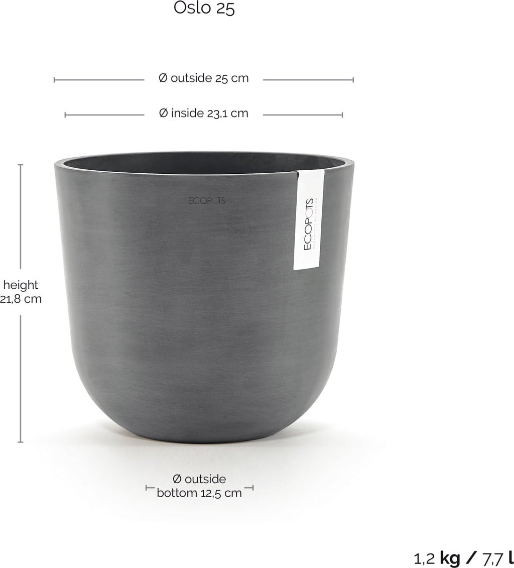 Ecopots Oslo Grijs, Ø 25 cm, hoogte 21,8 cm