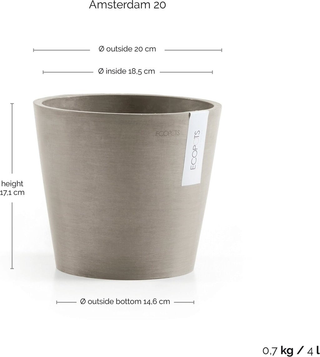 Ecopots Pot Amsterdam - Taupe, Ø 20 cm, hoogte 17,1 cm