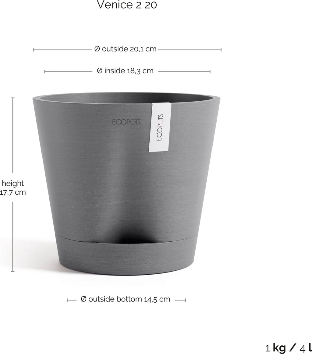 Ecopots Venice 2 Grijs, Ø 20 cm, hoogte 17,5 cm