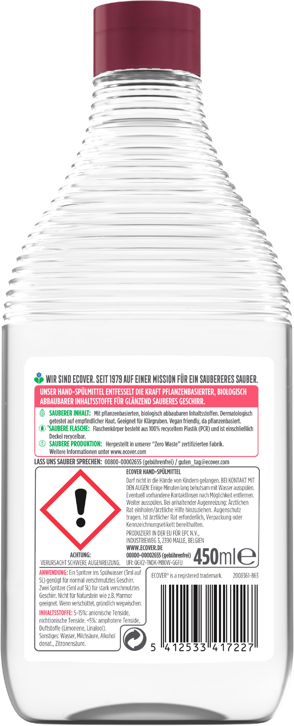 | Fabrikant: | Ecover Belgium N.V., Industrieweg 3, 2390, Malle, België, sds@peopleagainstdirty.com, www.ecover.com |