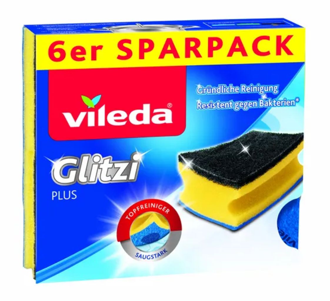 De Glitzi Plus Spons van vileda is een echte allrounder in het huishouden en kan worden gebruikt voor een breed scala aan toepassingen. De zachte doekzijde is ideaal om watervlekken op te vegen en oppervlakken of pannen voorzichtig schoon te maken. De zwarte schrobzijde kan gebruikt worden om hardnekkig vuil grondig te verwijderen. Dankzij de handige gripgroef is de spons gemakkelijk vast te houden en ligt hij prettig in de hand.