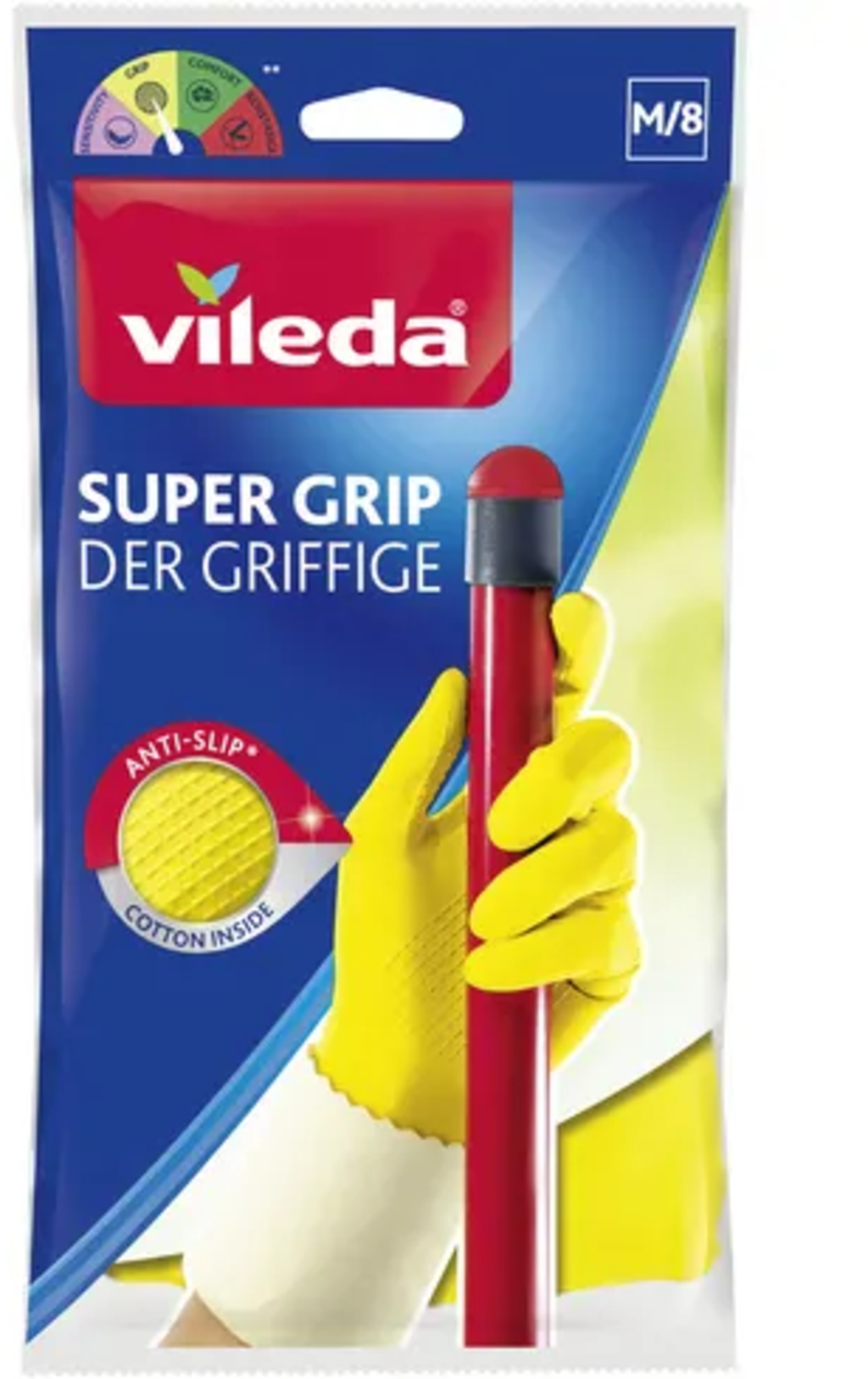 Vileda Super Grip Handschoenen, M/8 (1 paar)