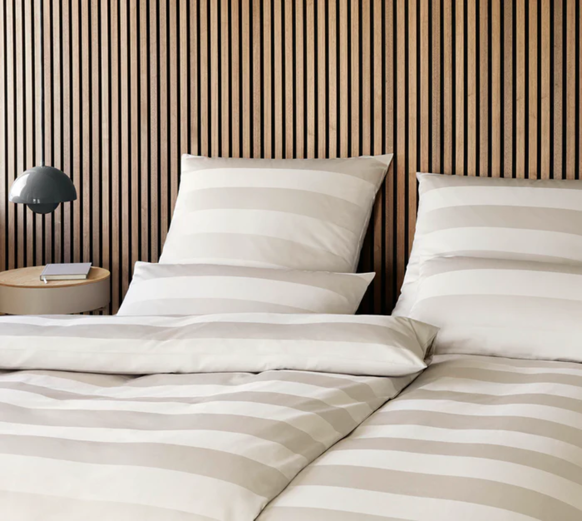 Geef je slaapkamer een stijlvolle upgrade met het En Bloc Jacquard beddengoed. Het fijn geweven blokstreeppatroon van hoogwaardig mako-satijn brengt rust en elegantie in je huis. Het gladde, zijdeachtige oppervlak zorgt voor een bijzonder aangenaam gevoel op de huid - perfect voor rustgevende nachten.