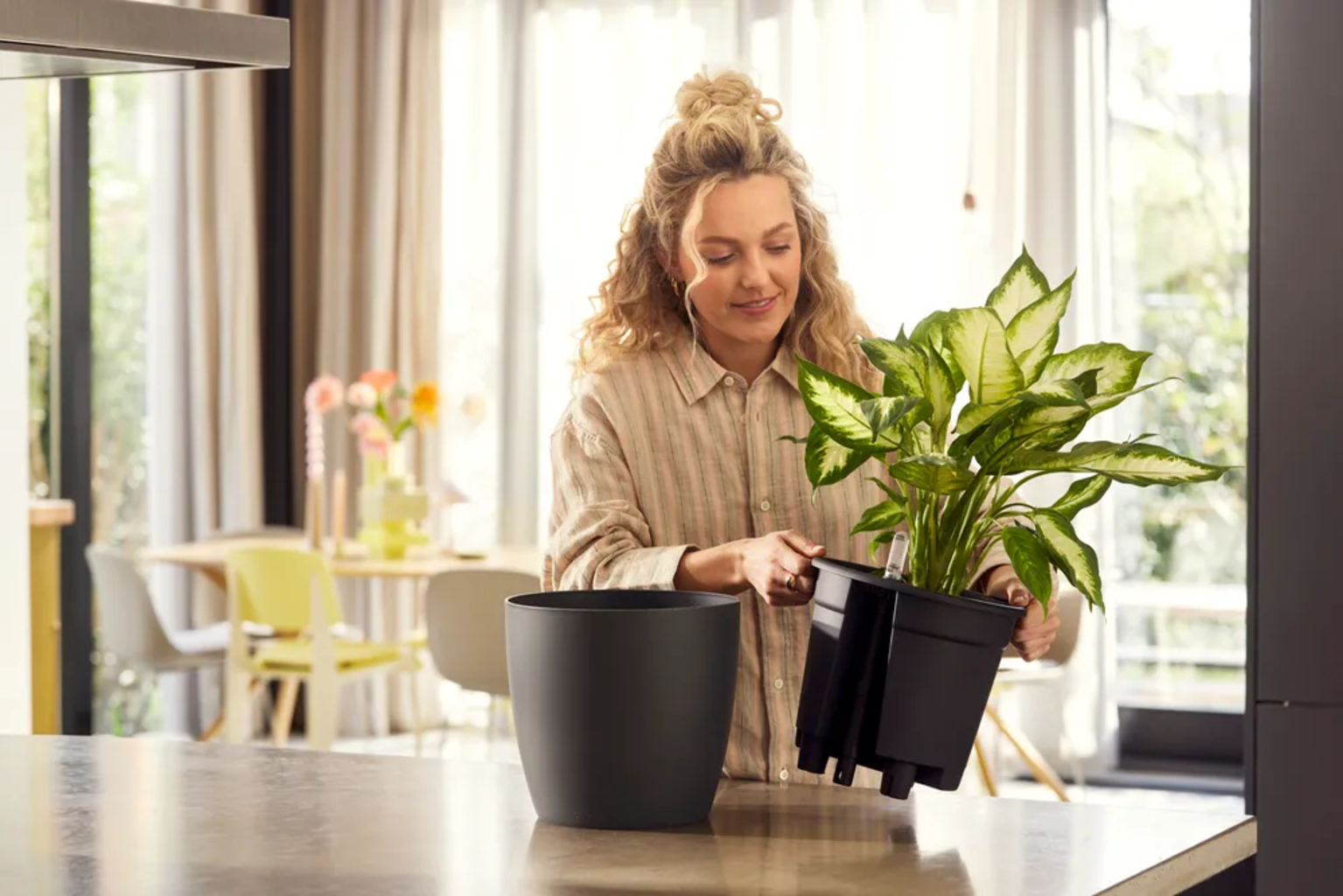 Deze bloempot van gerecycled plastic maakt indruk met zijn tijdloze, eenvoudige ontwerp en robuuste kwaliteit. Hij past harmonieus in de meest uiteenlopende interieurstijlen en laat je kamerplanten in stijl zien. Bijzonder praktisch: het geïntegreerde zelfbewateringssysteem voorziet je planten betrouwbaar van water en maakt dagelijks besproeien overbodig.