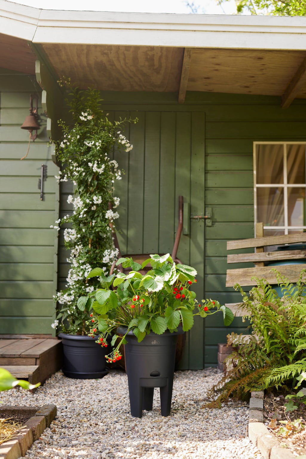 De opening aan de zijkant maakt het gemakkelijk om je aardbeien water te geven. Het opgeslagen water wordt dan geleidelijk afgegeven aan de planten. Het hoge ontwerp houdt de aardbeien ook van de grond zodat ze ongehinderd kunnen groeien. Als de takken vol fruit zitten, biedt de brede rand extra comfort en houvast. Ideale omstandigheden voor een bessenzomer.