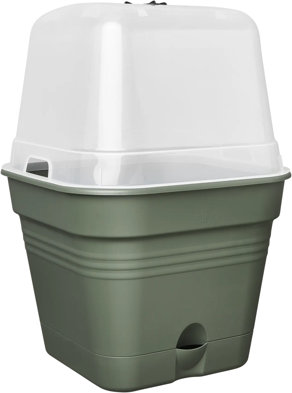 Met deze vierkante kweekpot van gerecycled plastic is het kweken van fruit-, groente- en kruidenplantjes eenvoudig. Dankzij het geïntegreerde waterreservoir hebben je planten altijd genoeg water tot hun beschikking en hoef je je geen zorgen te maken dat je ze steeds water moet geven. Het meegeleverde kweekhuis beschermt je plantjes tegen direct zonlicht, insecten en vogels en zorgt voor een optimaal groeiklimaat. Je kunt je dus binnenkort verheugen op krachtige zelfgekweekte planten.