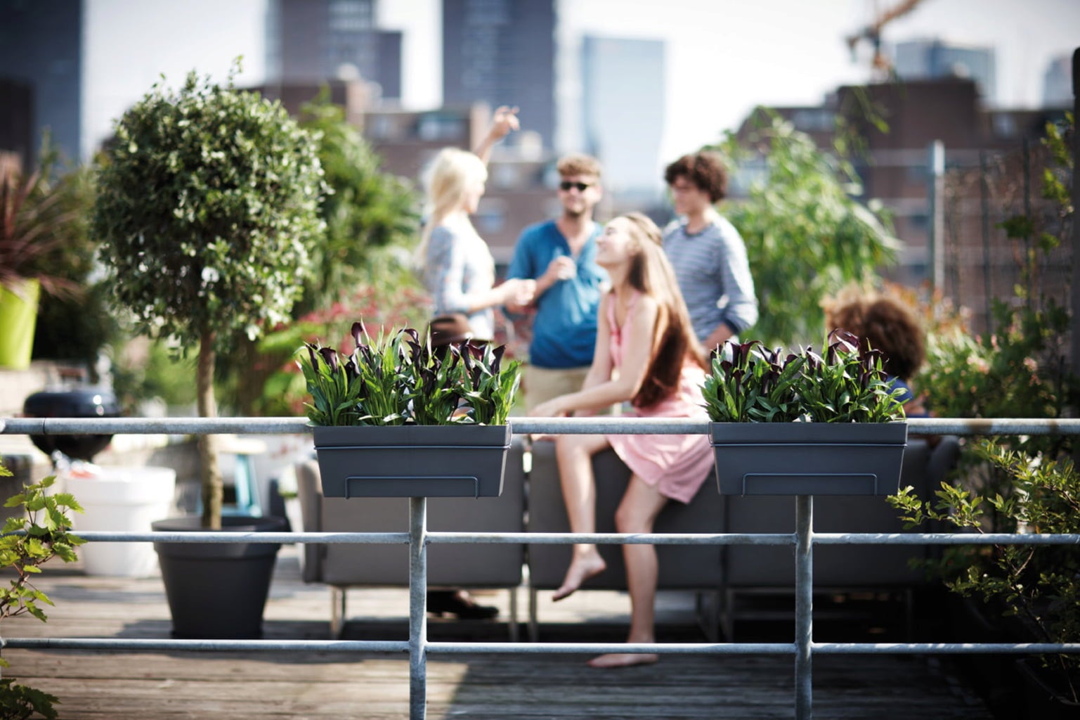 Met de praktische set verander je jouw balkon in een handomdraai in een groene oase. Weinig moeite en groots effect: het product kan eenvoudig aan de balkonreling worden opgehangen. Het in de box geïntegreerde waterreservoir slaat overtollig regen- en gietwater op en voorziet je planten van water wanneer dat nodig is. Het maakt dus niet uit als je een keer vergeet water te geven.