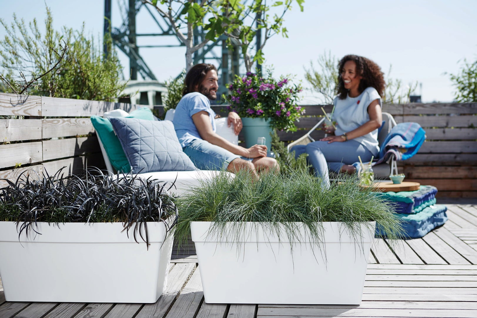 Deze plantenbak is ideaal voor balkons en terrassen en tovert ze om tot een bloeiend paradijs. Omdat de bak onzichtbare wielen heeft, kun je het moeiteloos verplaatsen en zo je terras steeds opnieuw inrichten.