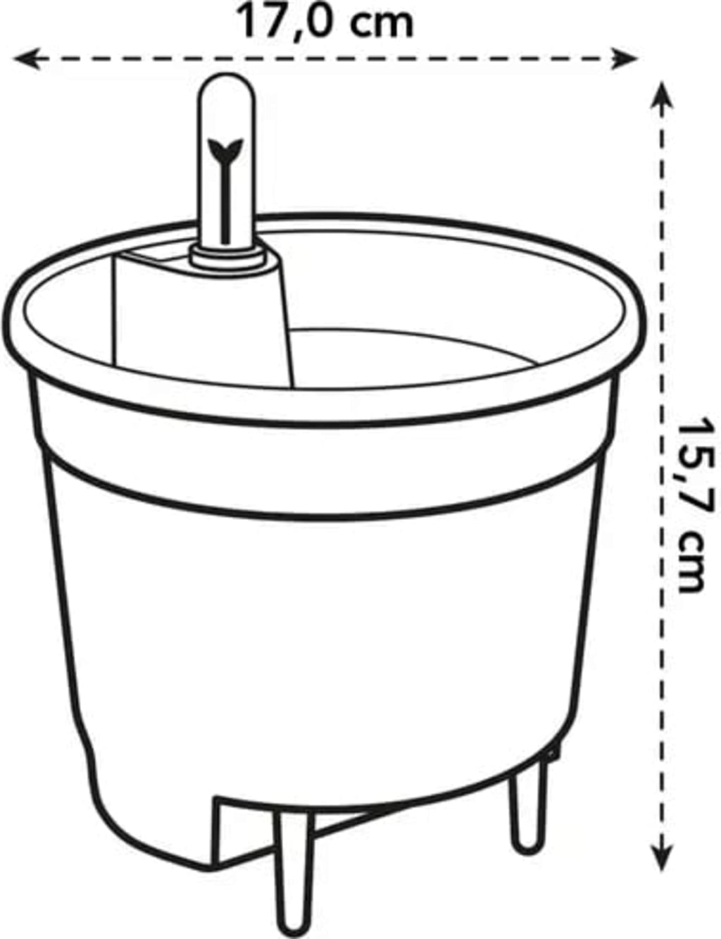 - Zelfbewateringssysteem: Ø 17 cm, H 15,7 cm, inhoud 2 l