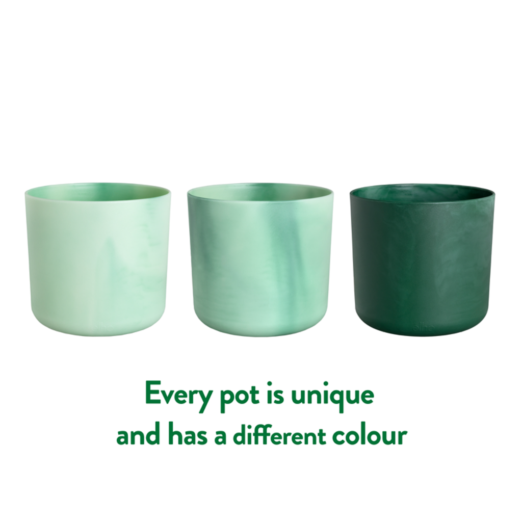 Deze unieke plantenpotten van elho laten op indrukwekkende wijze zien hoe mooi afval kan zijn. Ze zijn gemaakt van plastic afval uit de zee, zoals touwen en visnetten, en helpen zo vervuiling van de zee te voorkomen. Het gebruik van dit plastic afval geeft de potten ook hun levendige kleur en prachtige marmereffect. Elke pot maakt indruk met verschillende kleuren en marmer en is daarom echt een uniek stuk dat maar één keer bestaat in deze vorm. Zo kun je je huis met een schoon geweten en op een unieke manier vergroenen.