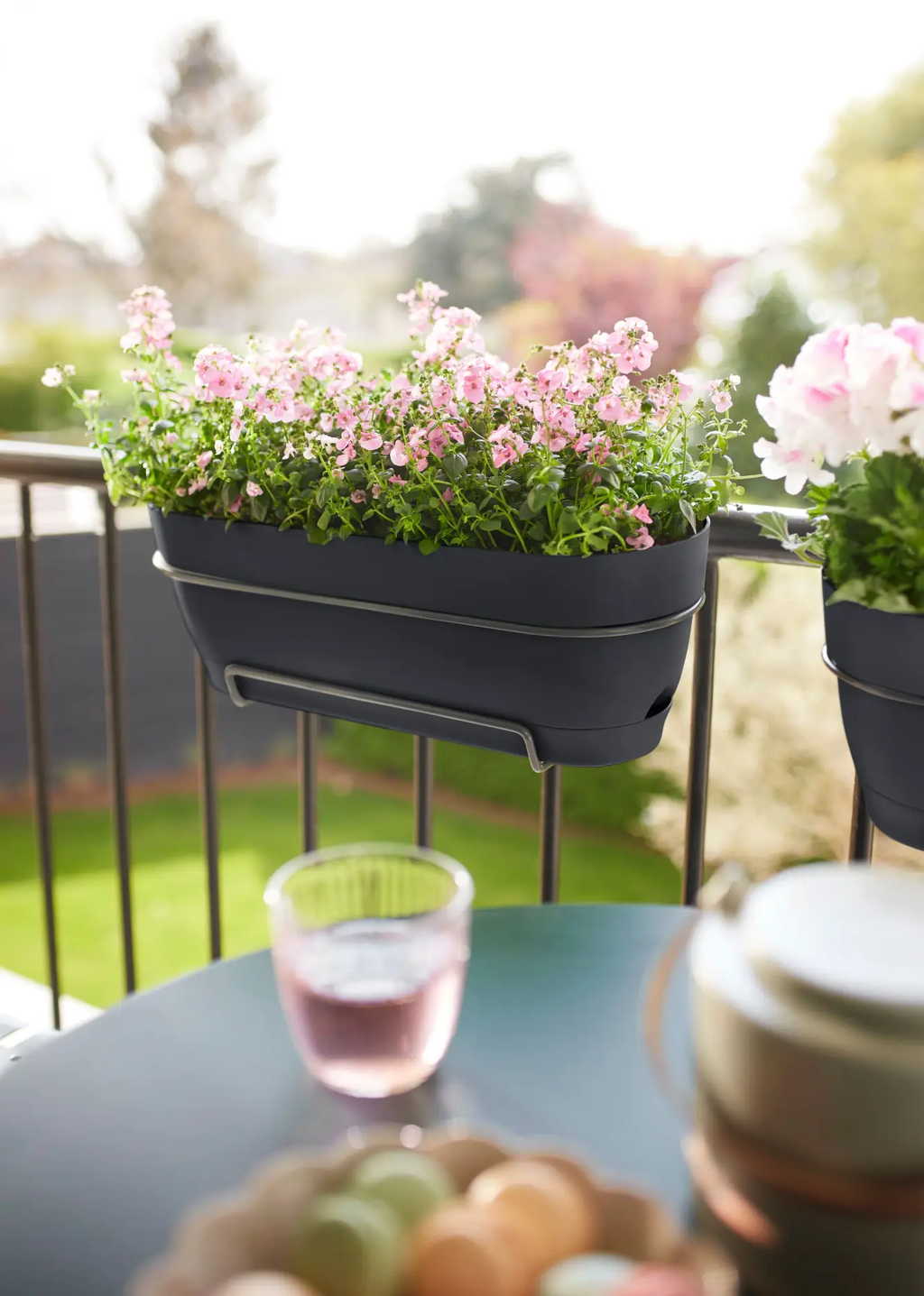 - Voor op de vensterbank, hek en balkonreling