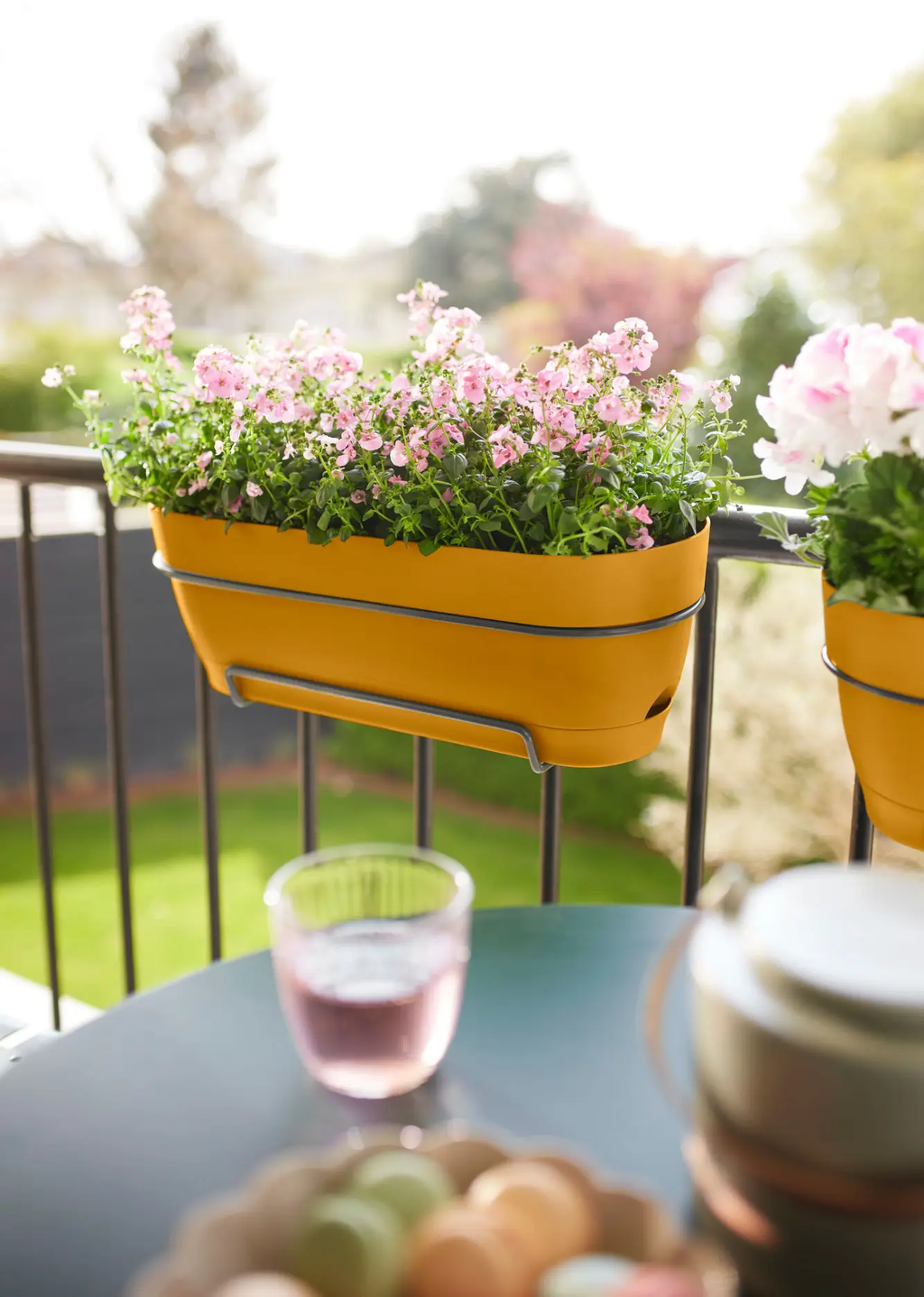 Met deze duurzaam geproduceerde balkonbak in trendy kleuren kun je balkonrelingen, schuttingen en vensterbanken op een moderne manier vergroenen en je huis omtoveren tot een groene oase. Alleen of in combinatie met andere plantenbakken uit de vibia serie is deze balkonbak altijd een geweldige blikvanger die je planten altijd van voldoende water voorziet dankzij het geïntegreerde waterreservoir.