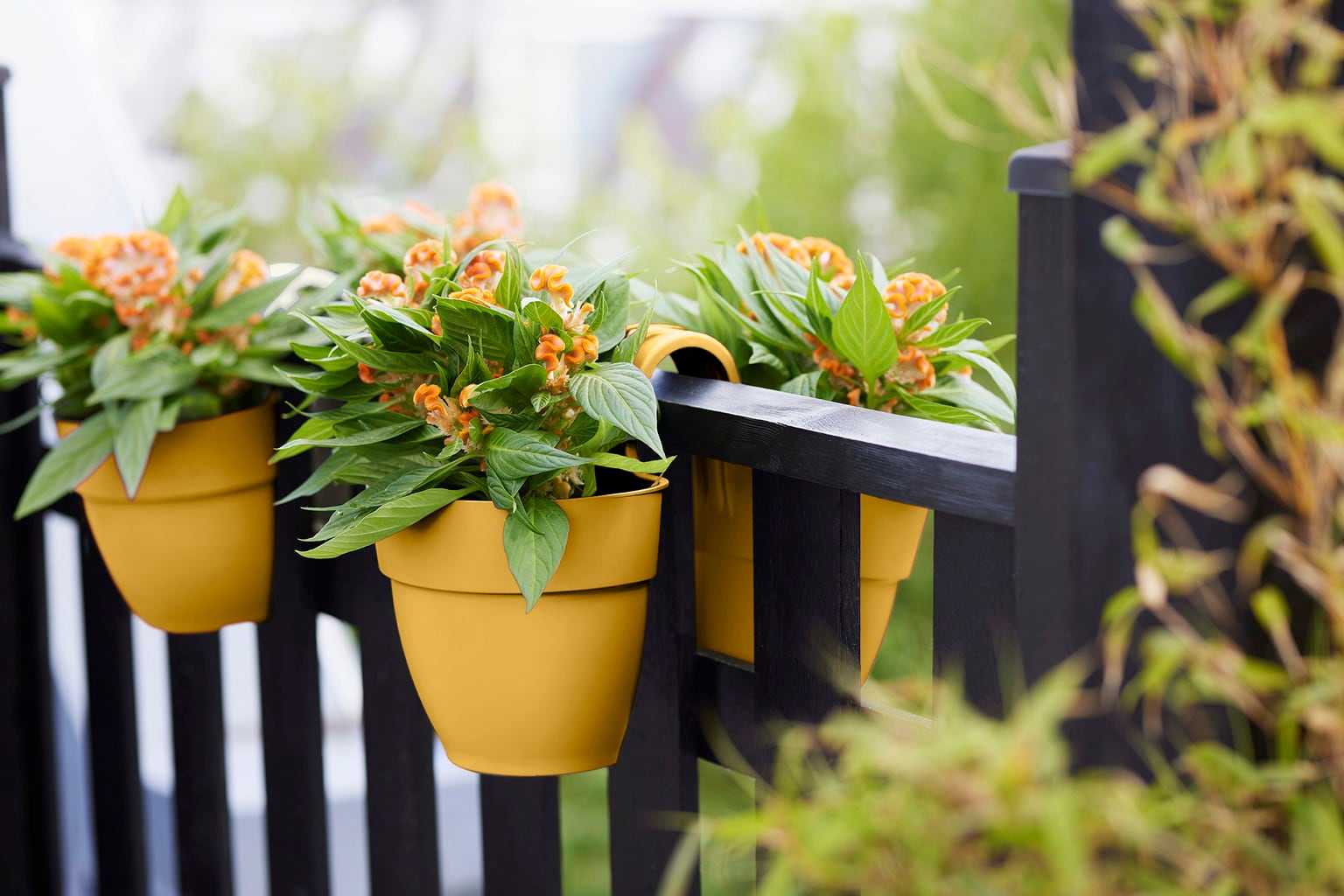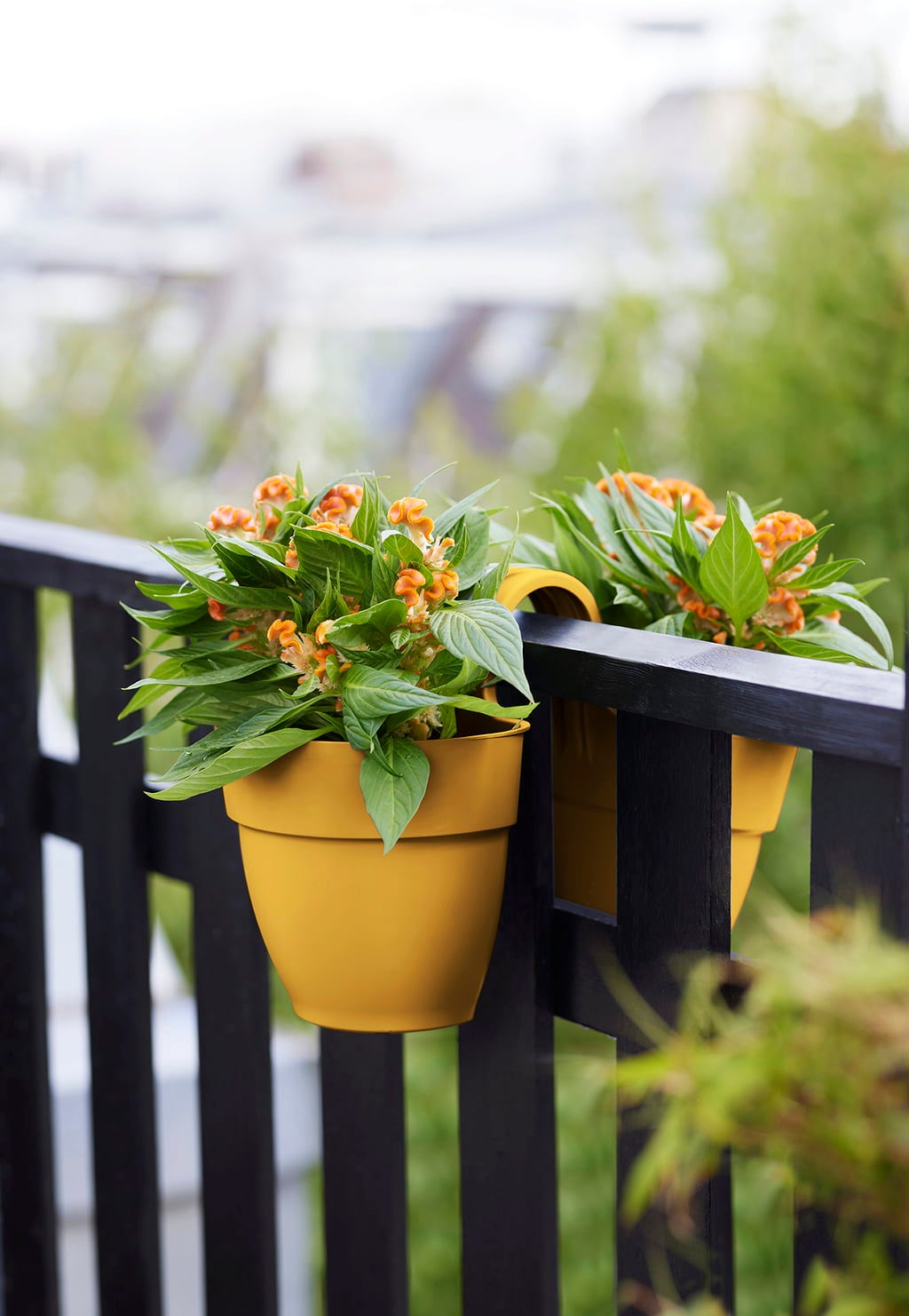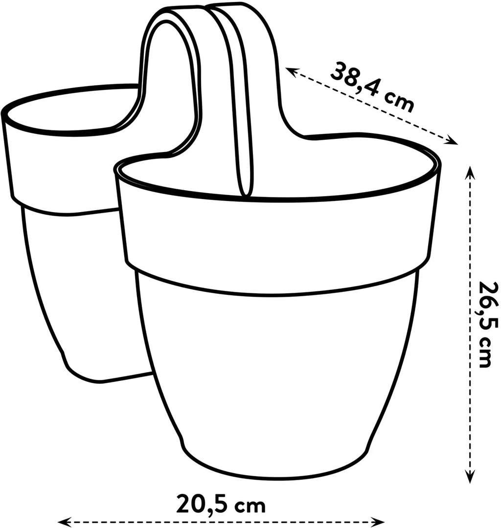 Deze tweedelige bloempot is een bijzondere manier om groen toe te voegen aan jow balkon en een geweldige aanvulling op klassieke balkonbakken. De ophanging in het midden maakt het mogelijk zowel de binnenkant als de buitenkant van de balkonreling met planten te versieren, waardoor hij van alle kanten een blikvanger wordt. Met zijn gebogen vormen laat deze bloempot weelderig groeiende planten goed tot hun recht komen.