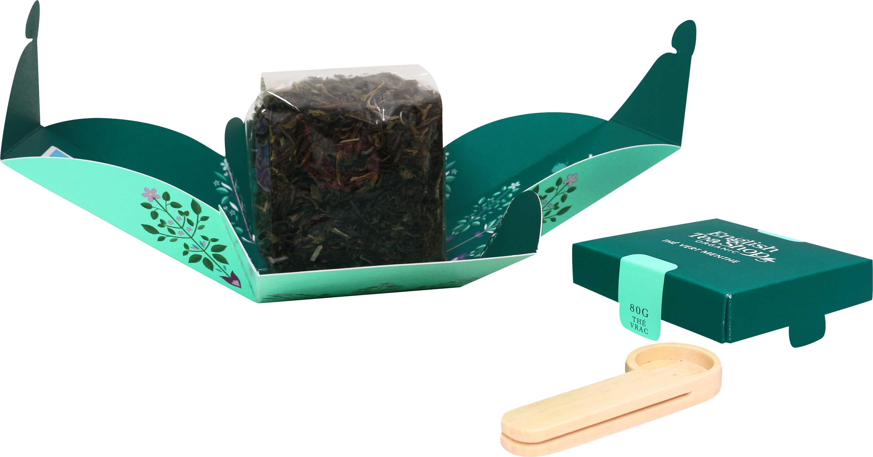 Smaakt heerlijk warm en ijskoud, puur of op smaak gebracht met honing en/of citroen. De mooie origami vouwdoos bevat ook een klein houten schepje om te portioneren - een smakelijk cadeau!