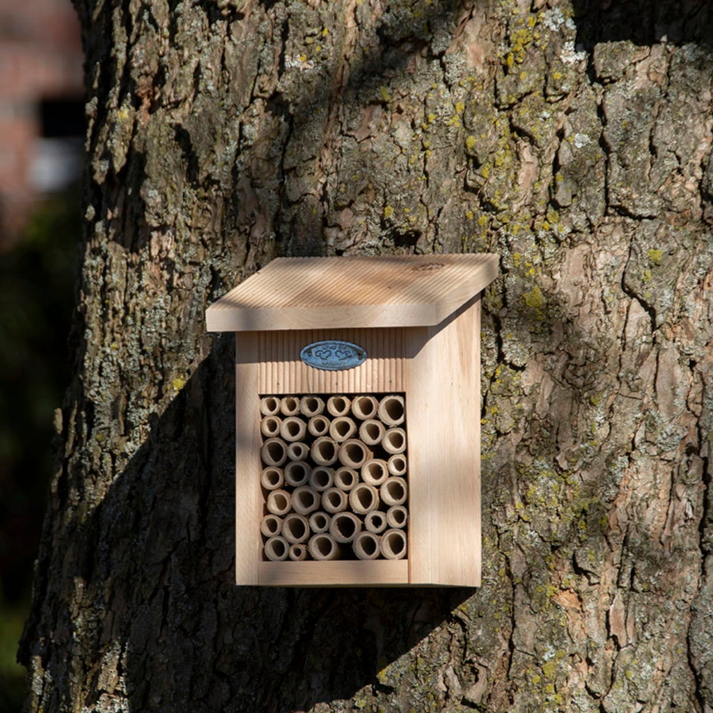 Met dit geweldige bijenhuis kun je deze nuttige insecten helpen beschermen en ze een veilig onderkomen bieden. Het is uitgerust met bamboerietjes van verschillende diameters, zodat verschillende soorten wilde bijen hier kunnen nestelen. Een vrouwelijke bij vormt verschillende cellen in een bamboerietje, die ze uitrust met een eitje en wat stuifmeel en nectar voor de larve. Met dit goed doordachte huisje maak je de nuttige insecten zeker erg blij.