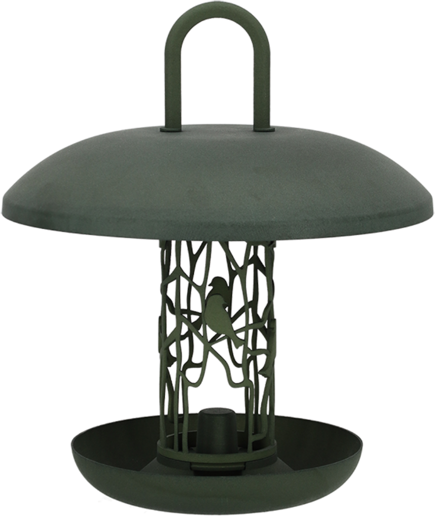 De gerecyclede vetbolsilo met schaal biedt wilde vogels een schone en praktische voederplek. Hij is gemaakt van gerecycled plastic, is milieuvriendelijk, stevig en past perfect in de tuin.