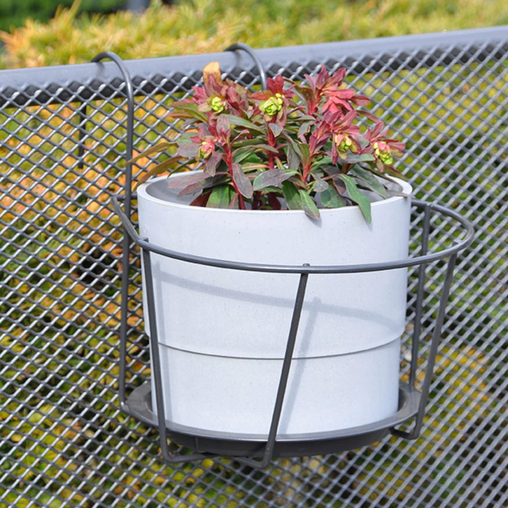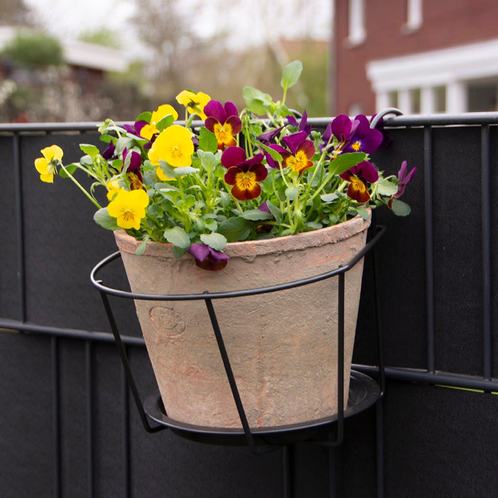 Met de bloempothanger van Esschert Design kun je je bloempotten eenvoudig en stijlvol omtoveren tot hangende potten. De hanger is gemaakt van stevig en duurzaam ijzer en kan snel en eenvoudig aan de reling van je balkon worden gehangen, maar verfraait ook hekken en balustrades.