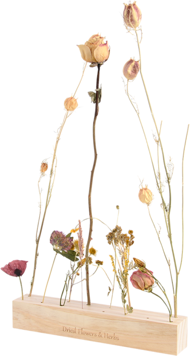 Met de prachtige bloemen- & kruidenstandaards van Esschert Design kunnen droogbloemen gemakkelijk worden gerangschikt en gebruikt als decoratie. De standaards zijn gemaakt van 100% FSC®-gecertificeerd dennenhout. Verkrijgbaar in verschillende maten en met een eenvoudig ontwerp passen de standaards in elk huishouden