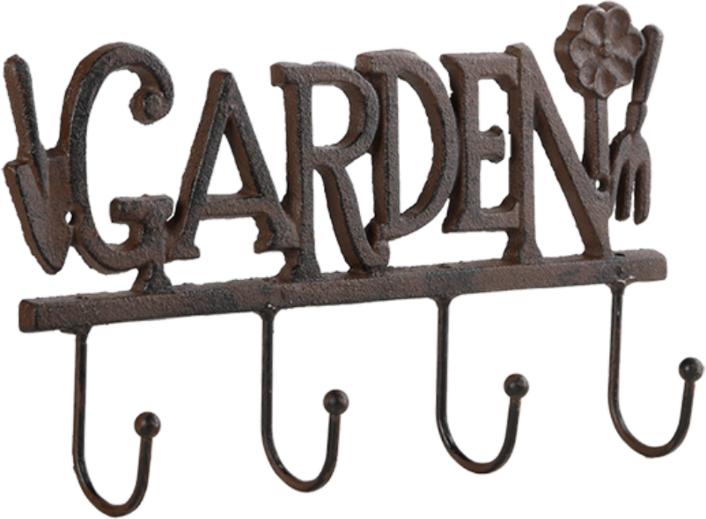 De liefdevol vormgegeven ''Tuin' kapstok van Esschert Design is niet alleen ideaal voor kleding, maar ook voor het ophangen van gereedschap en dergelijke. Dankzij de twee voorgeboorde gaten kunnen de vier haken eenvoudig worden gemonteerd.