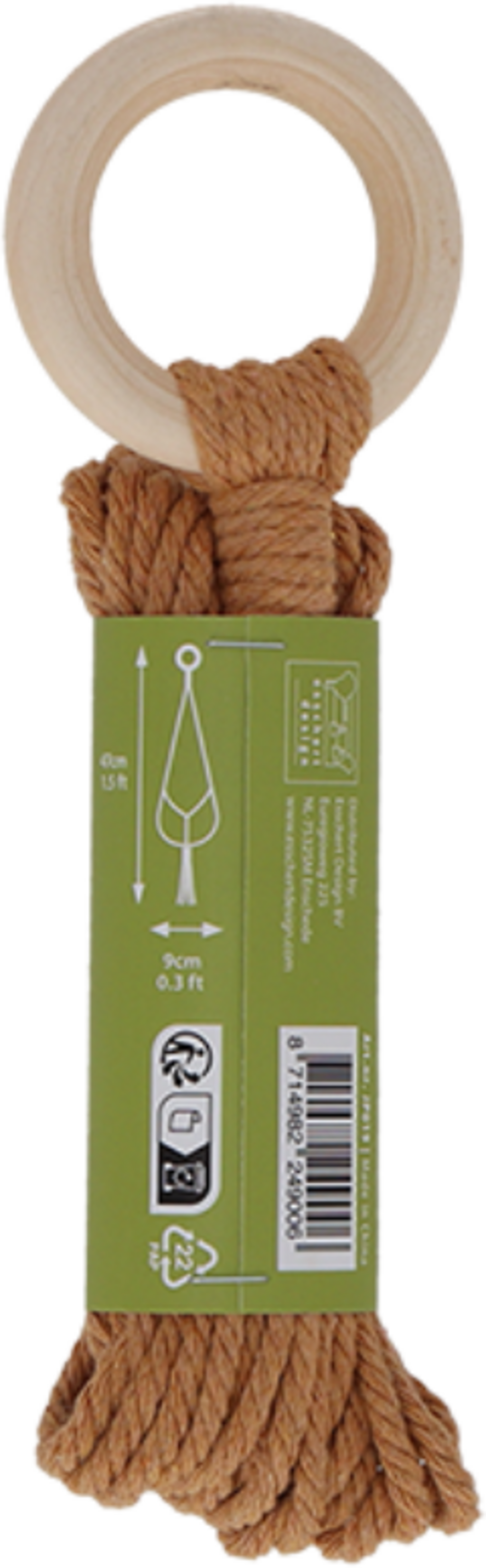 De macramé plantenhanger brengt niet alleen een vleugje boho chic in huis, maar stelt je ook in staat om je persoonlijke bloempotten in stijl tentoon te stellen. De houten ring dient als natuurlijk accent en zorgt voor een veilige ophanging.