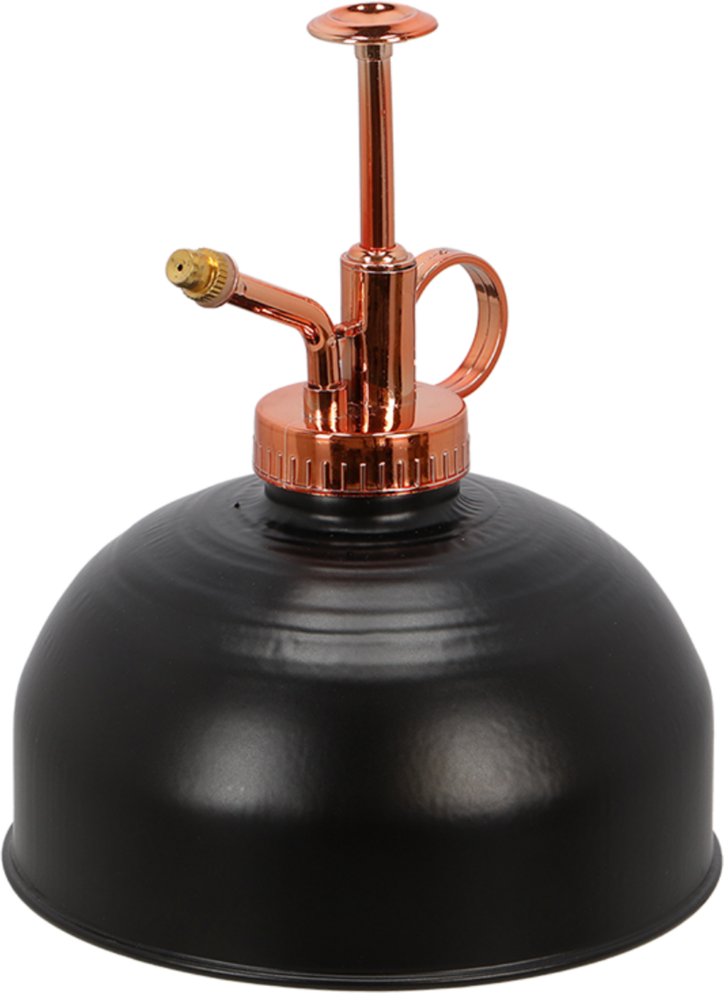 Stijlvolle plantenspuit in zwart met koperkleurige details. Verzorgt je planten en ziet er ook nog eens mooi uit.